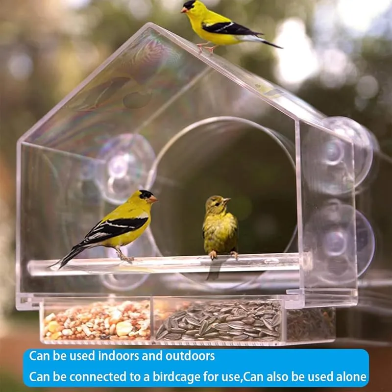 窓用鳥の餌箱、 CTRICALVER 外側透明 PC プラスチック鳥ボックス (20 x 11 x 20cm) 吊り下げ吸盤付き、取り外し可能なトレイと排水穴付き 庭 屋外 裏庭 野生動物 小鳥用 0