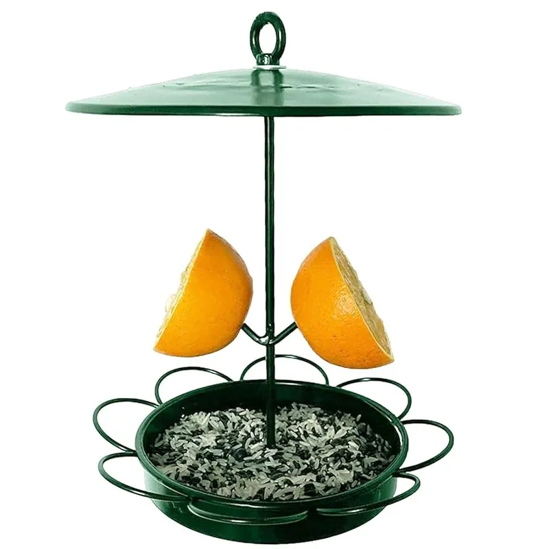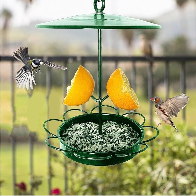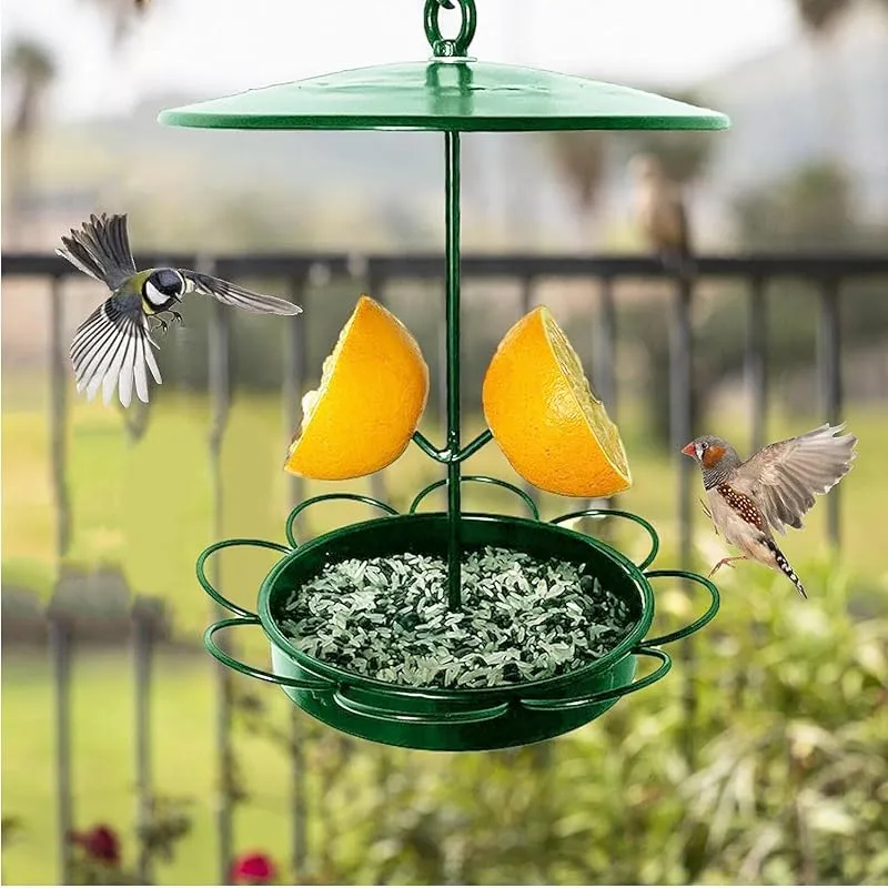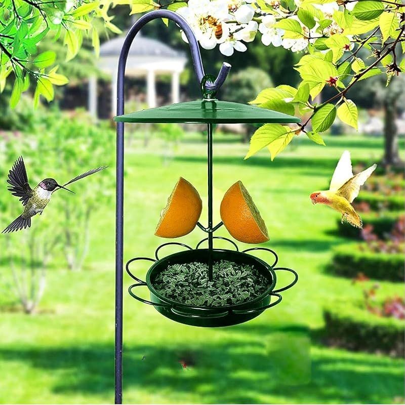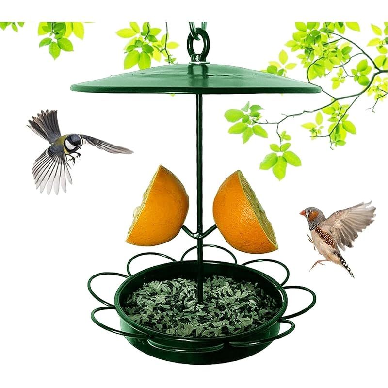 鳥の餌箱 バードフィーダー 野鳥の餌箱 鳥の給餌トレイ 鳥愛好家に最適! フック付き 果物をフックに吊るして餌を与えることができます! (グリーン) 0