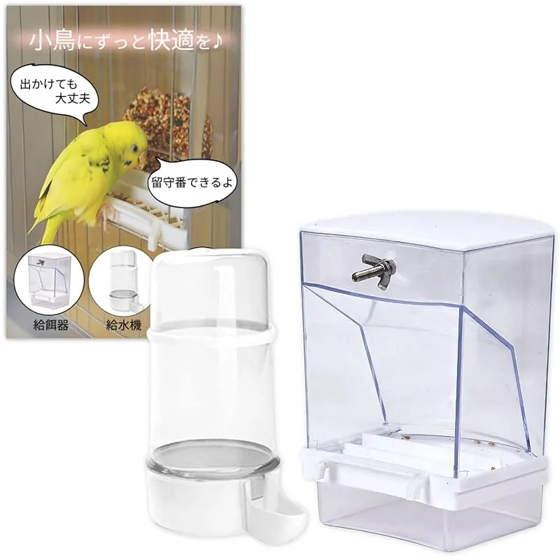 adzu 鳥の餌 自動給餌器 インコ 餌 餌やり機 小鳥の餌 文鳥 バードフィーダー 鳥 餌入れ オートフィーダー bird feeder ケージ取付け (給餌器+給水器セット) 0