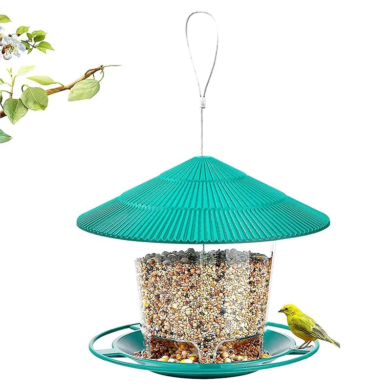 バードフィーダー 野鳥 小鳥 野鳥の餌台 吊り下げ 自動供給 上質プラスティック 洗える屋根付きバードウォッチング 鳥 エサ台 給餌器餌入れ 庭 ガーデン ベランダ屋根付き S字フック付き鳥 (グリーン) 0