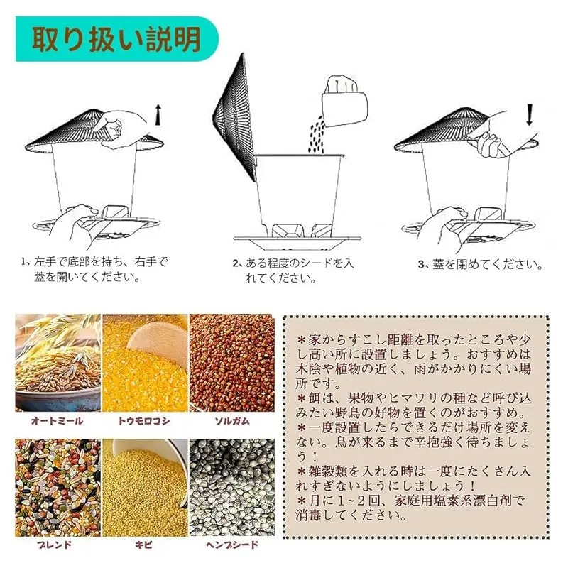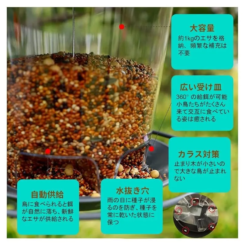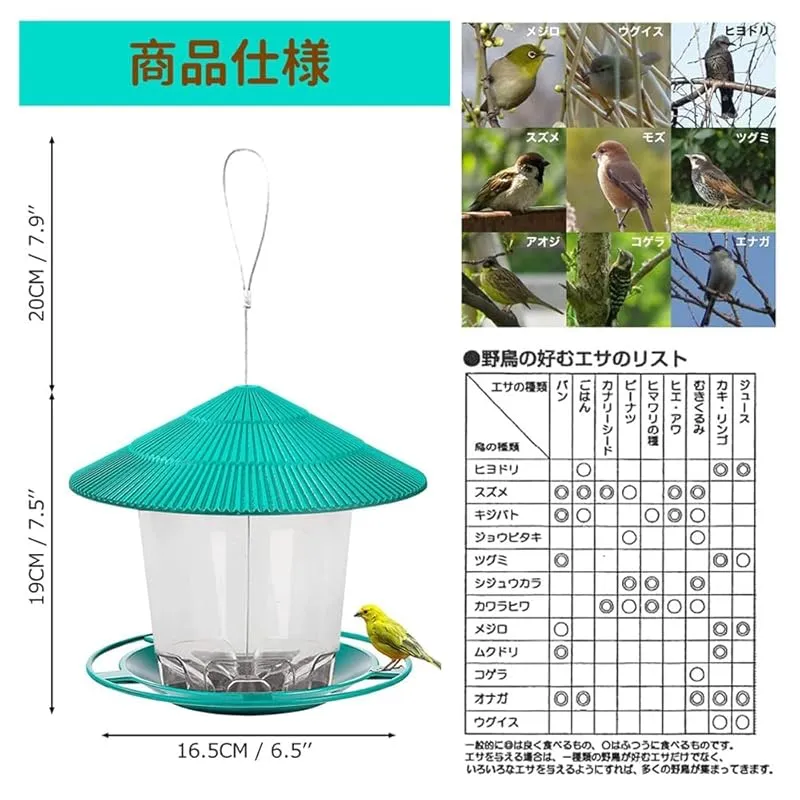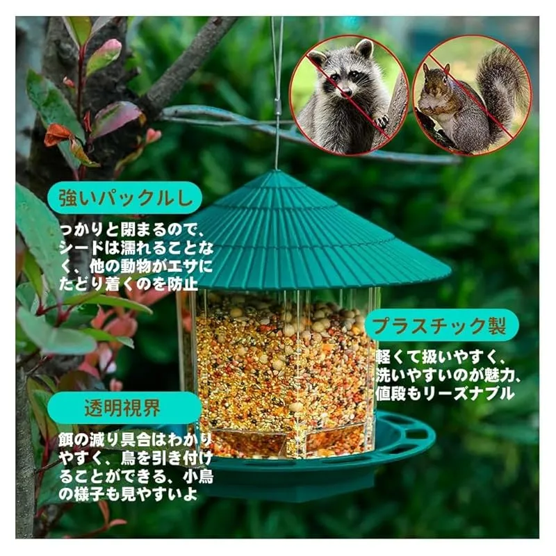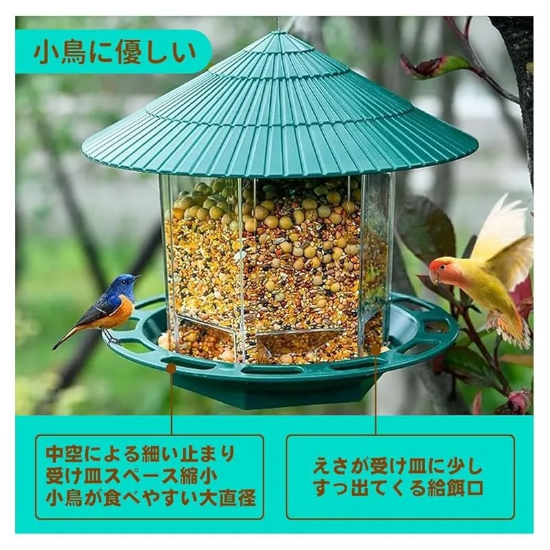 【理想的な選択】 庭の鳥の健康を便利にするために、野鳥の餌やり機をお選びください。 週に1回、鳥の餌箱を確認し、定期的に中性洗剤と水溶液で洗ってください。