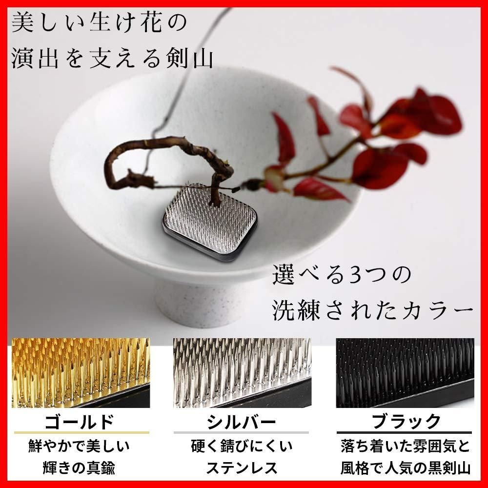 【数量限定】日本製 ゴムリング付き 本格派 角剣山 生け花 花留 剣山 (小角 花明かり 黒剣山(ブラック)) 京都