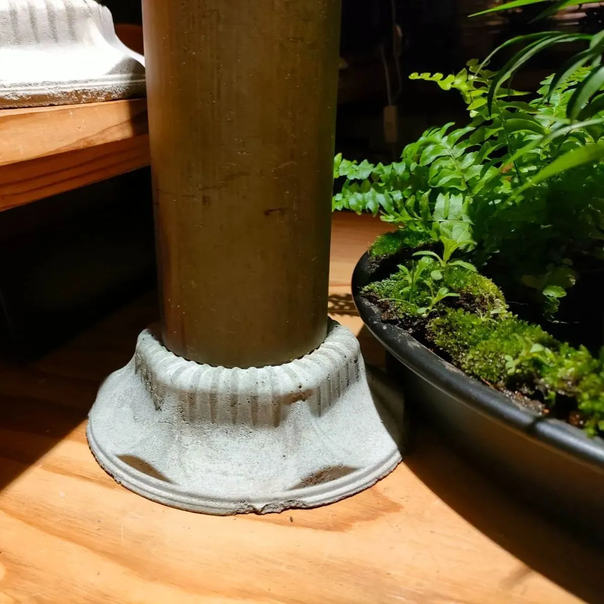 庭のつくばいのようにテーブルの上でも気楽に苔や緑を楽しめる自作品、自称『緑化リング和のつくばい水草植物セット』の出品です。
