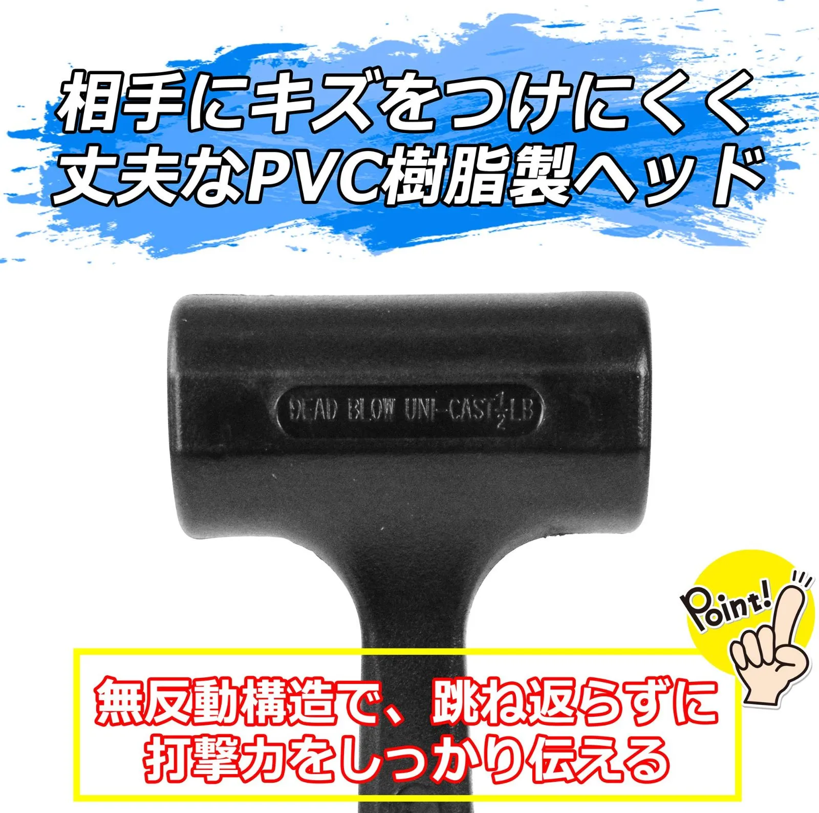 特徴:跳ね返らない無反動構造で打撃力をしっかり伝える
