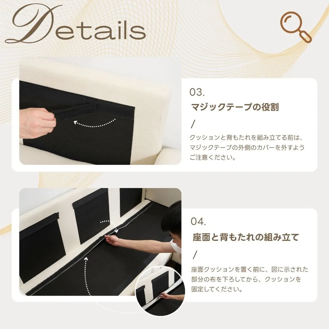 【組立簡単で安心】付属パーツが少なく、女性一人でも簡単に組み立て可能。届いてすぐに快適なくつろぎ空間をお楽しみいただけます。