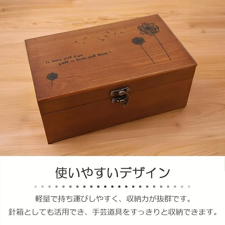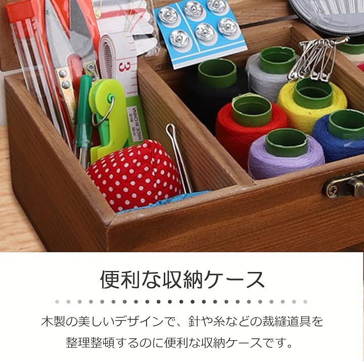 「使いやすいデザイン」 木製の裁縫箱は、軽量で持ち運びしやすく、収納力が抜群です。