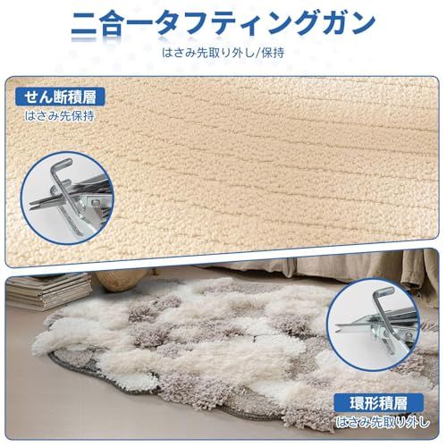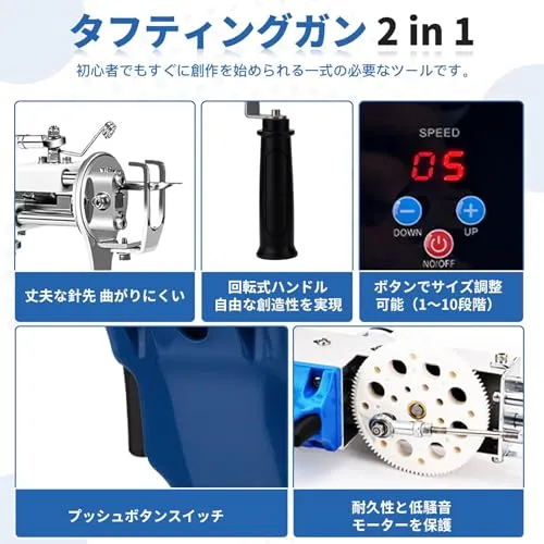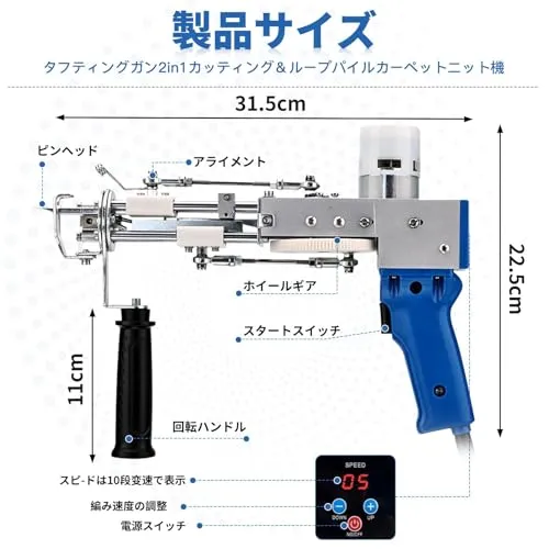 タフティングガン 2 in 1 カットアンドループパイルラグ 編み機 電気カーペットタフティングガン デジタル表示と速度制御 カーペットの高速織り用の家庭用DIYツール カーペットトリマー付き 日本語説明書付き ブルー★m