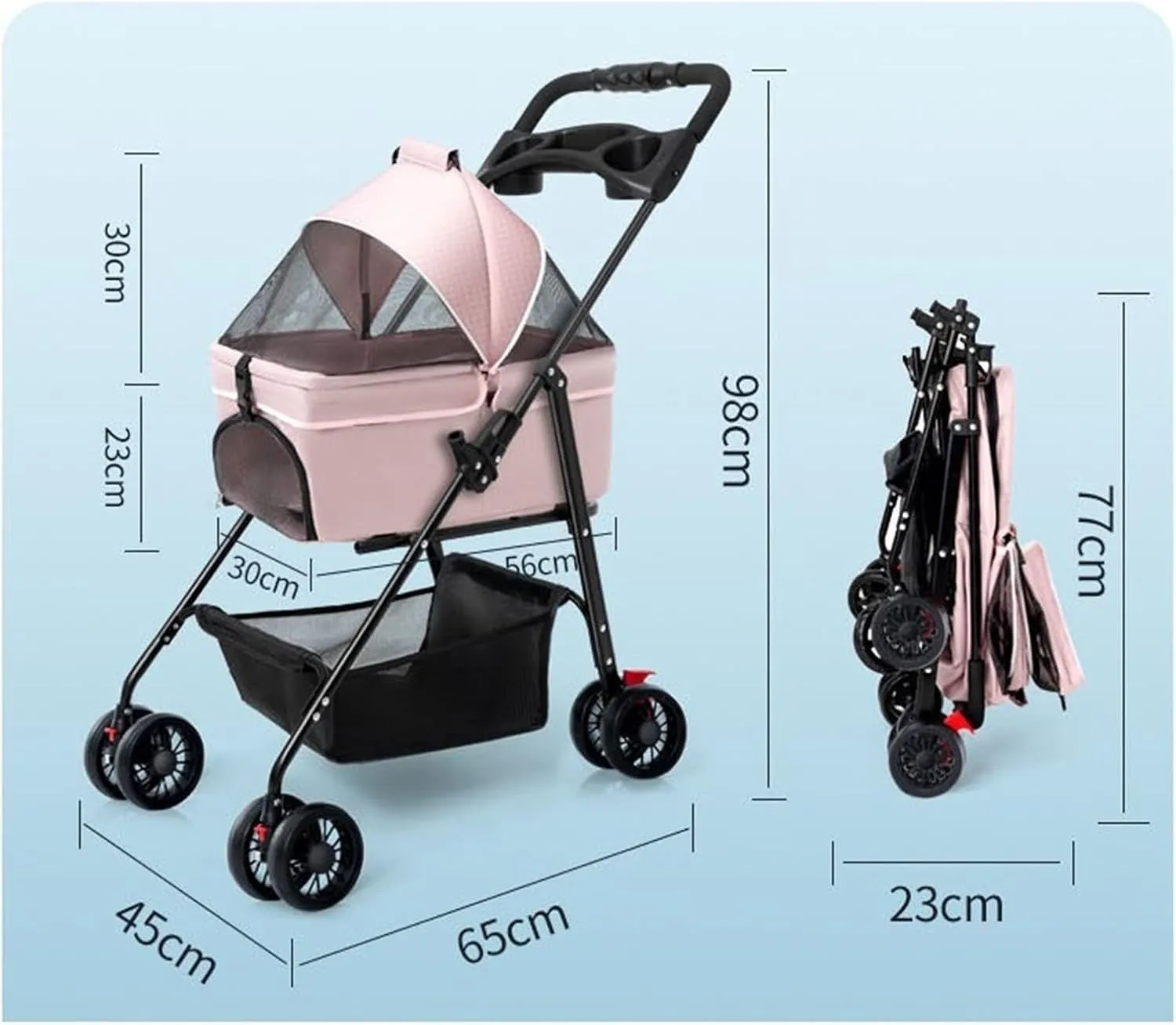 【複数小型ペット対応】 商品の長さ約65cm、幅45cm、高さ98cm;耐荷重約20KG、多頭小型ペット対応します。多くのネコちゃん、小型犬、介護用カートとして股関節の問題または不便な動きに適し、旅行しやすい。