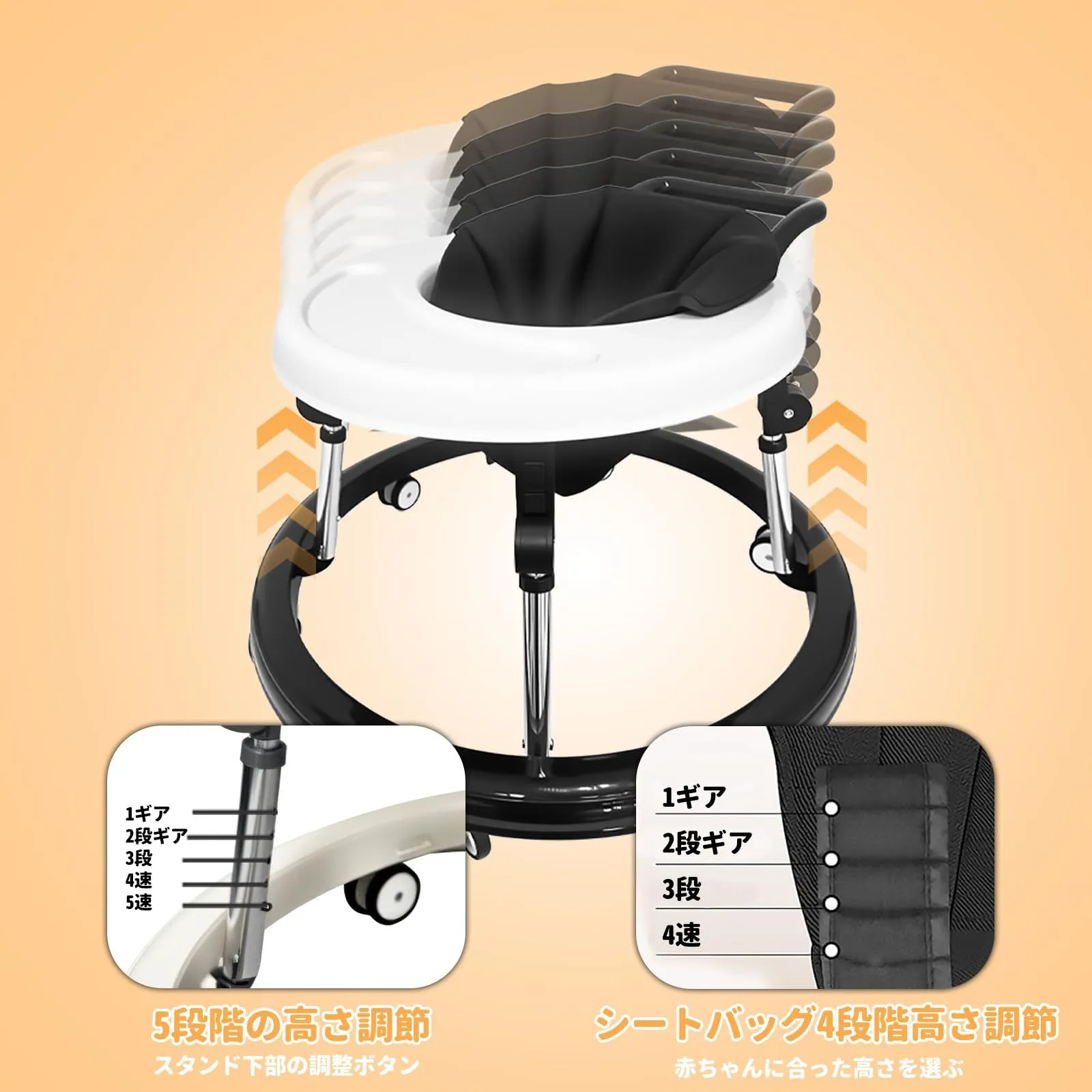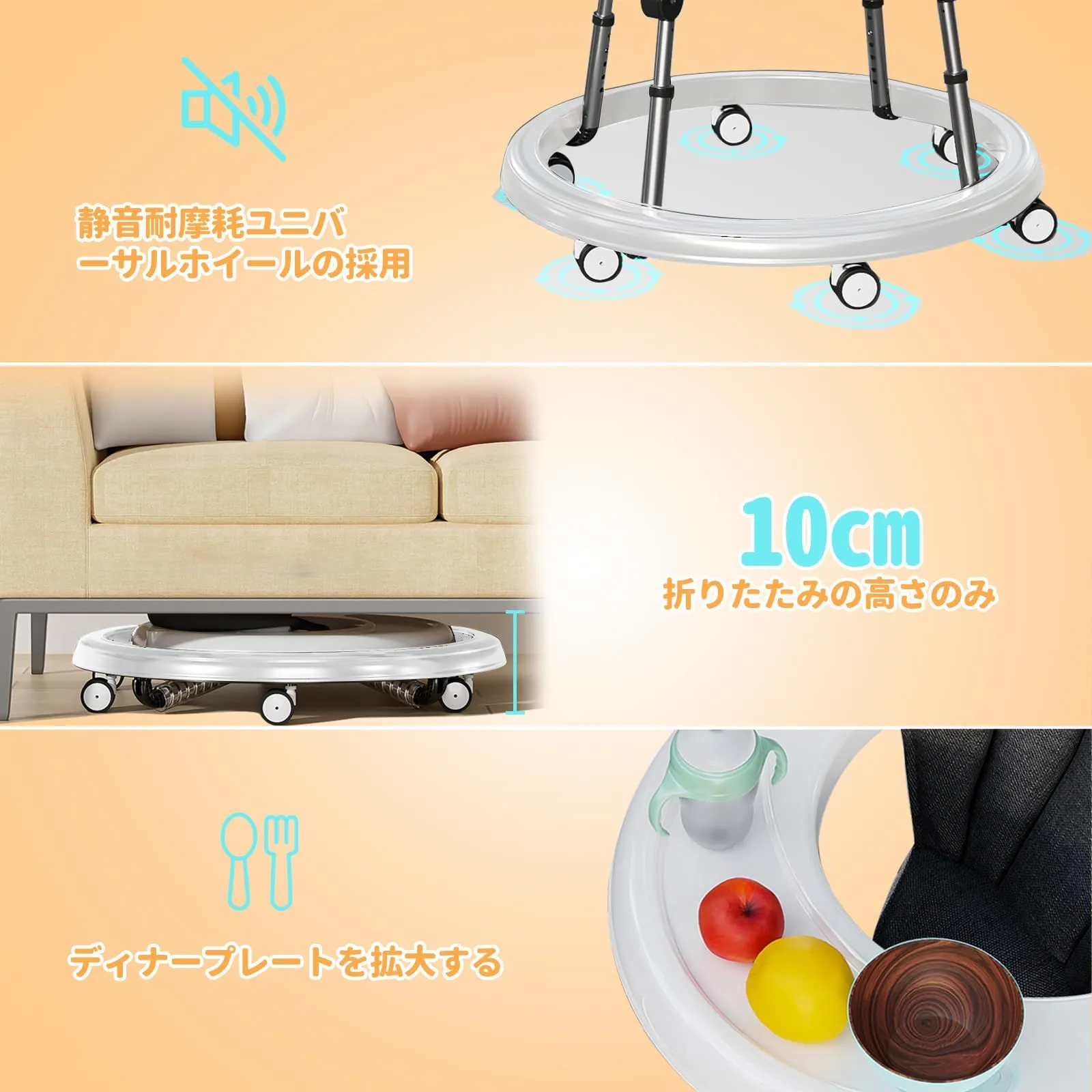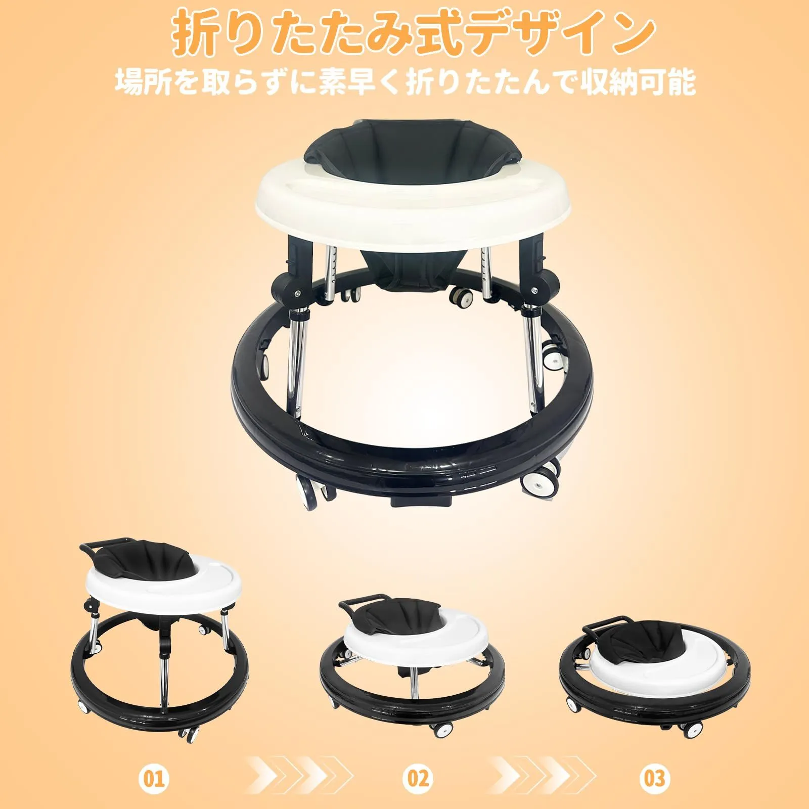歩行器 ベビーウォーカー 赤ちゃん 折りたたみ 高さ調整可能 手押し車 横転防止 UBRAVOO コンパクト 収納便利 ベビー用品 おしゃれ 出産祝い プレゼント (ブラック)