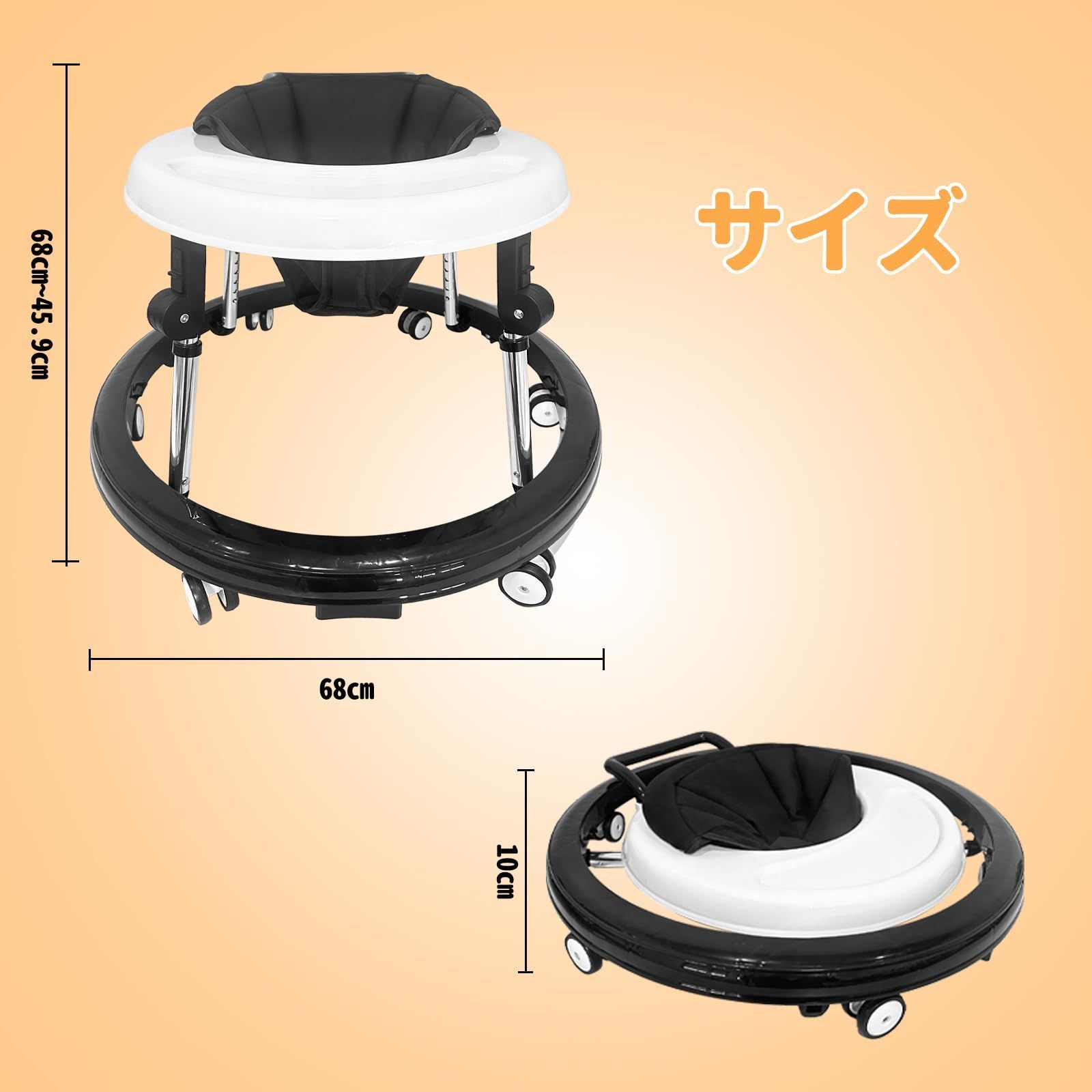 UBRAVOO 歩行器 ベビーウォーカー 赤ちゃん 折りたたみ 高さ調整可能 手押し車 横転防止 コンパクト 収納便利 ベビー用品 おしゃれ 出産祝い プレゼント (ブラック)