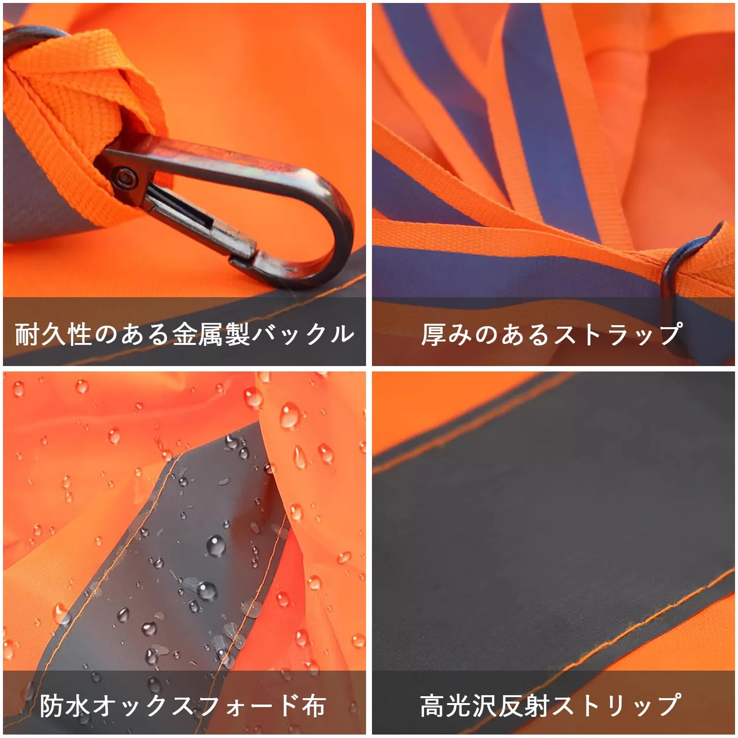 識別が容易:鮮やかなオレンジ色で日中は一目でそれとわかる、また、暗闇で光るバンドは夜間でも使用可能で(夜間の反射距離は最大300メートル)、風向きを簡単に確認できる。