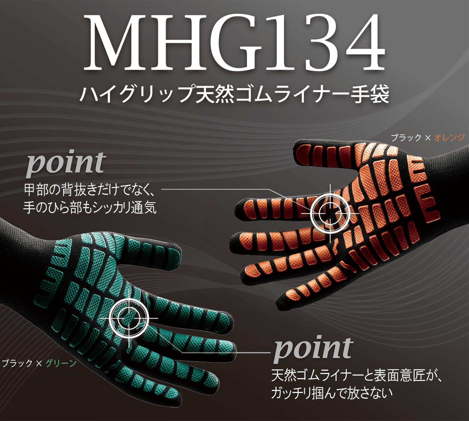 新品 [ミドリ安全] ハイグリップ 滑り止め手袋 作業用 高グリップ 通気性 MHG134 ブラック×オレンジ L 1双入