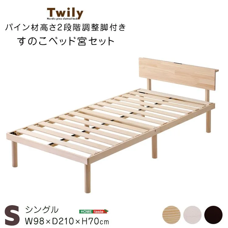 すのこベッド 宮棚付き パイン材 2段階調整 ベット下収納 シングル 一人暮らし