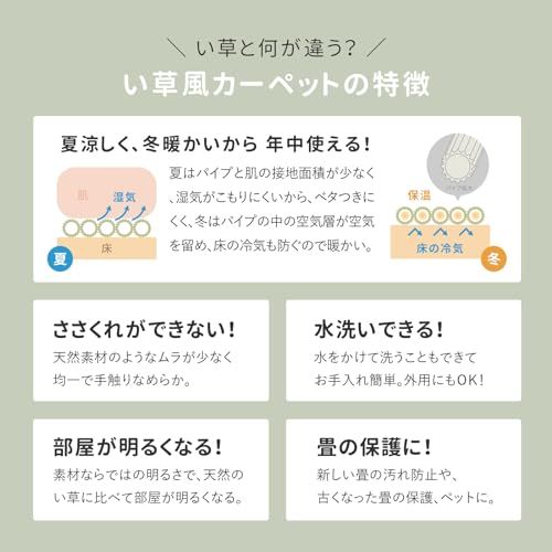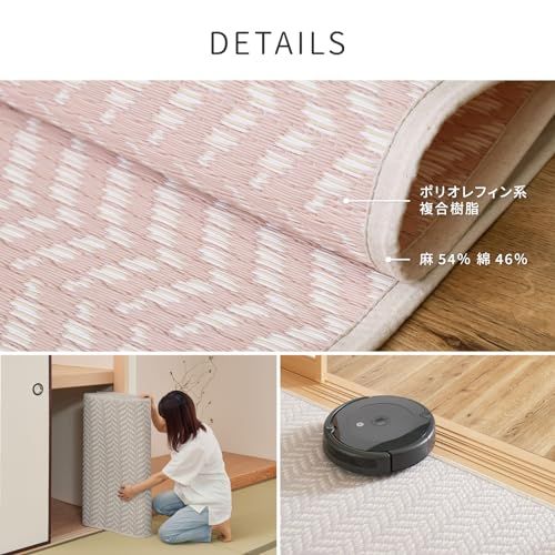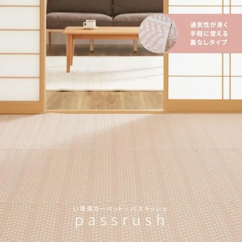 萩原 洗える い草風カーペット ピンク 江戸間6畳 約261X352cm 「パスラッシュ」 ラグ 花ござ 子供部屋 ペット 保護 パステルカラー★m