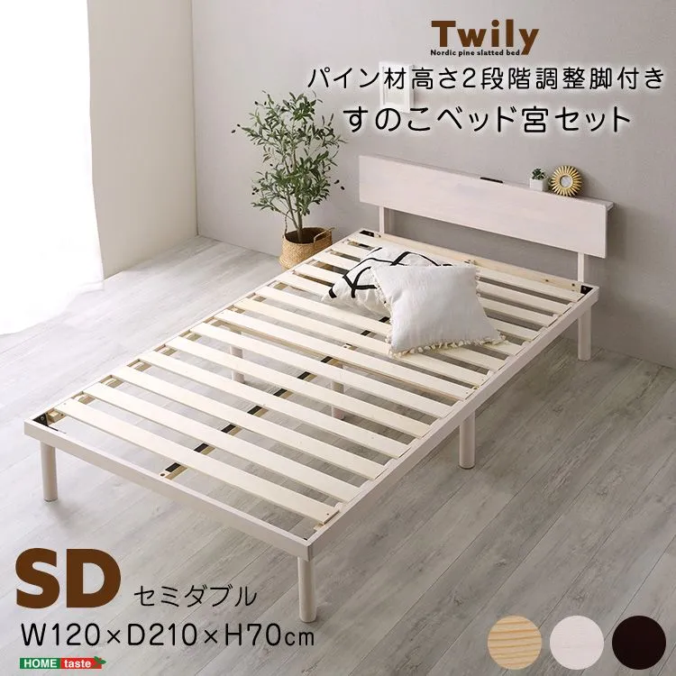 すのこベッド 宮棚付き パイン材 2段階調整 ベット下収納 セミダブル 一人暮らし 二人暮らし