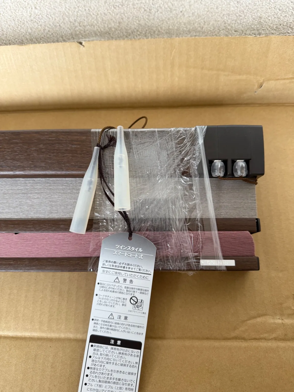 35.春色ピンク🌸×グレー ニチベイ もなみ プリーツスクリーン ツイン 新品 150×238 /cm