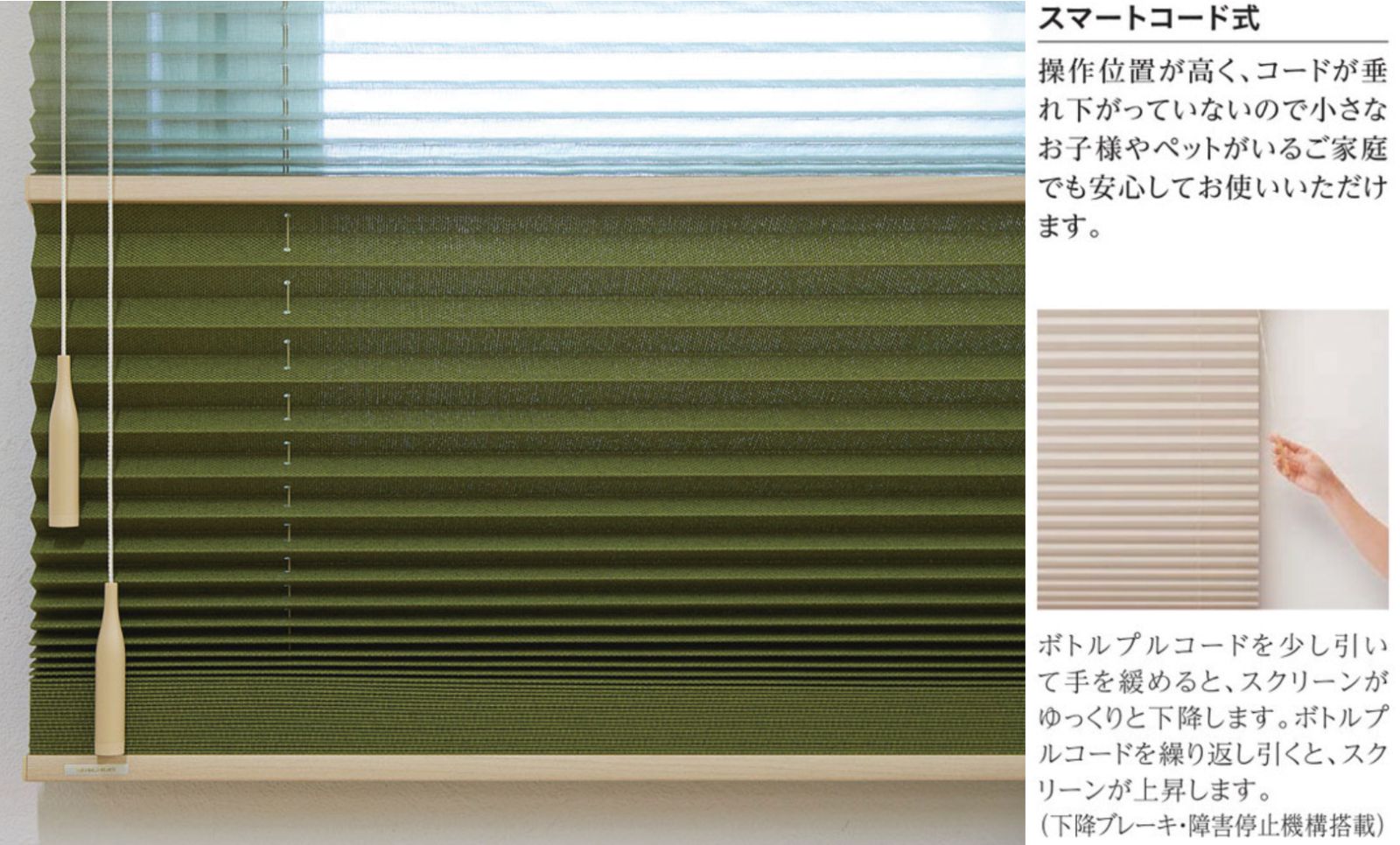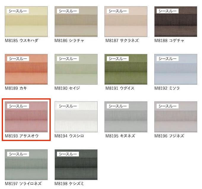 ニチベイ もなみ プリーツスクリーン ツインタイプ 上部:厚地 いぶきM8023(チャネズ)+ 下部:レース生地 みなもM8193(アサスオウ) スマートコード式