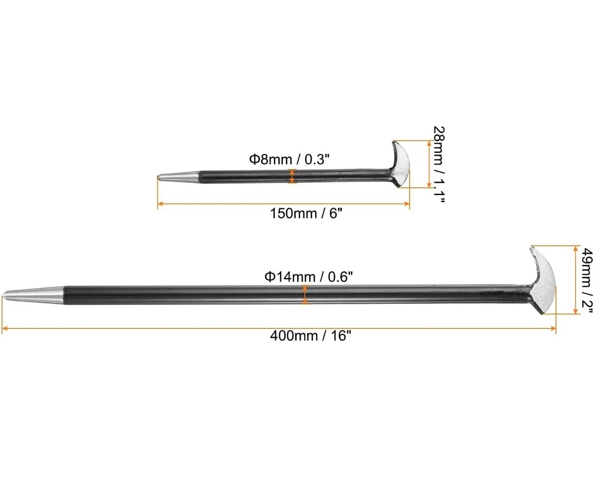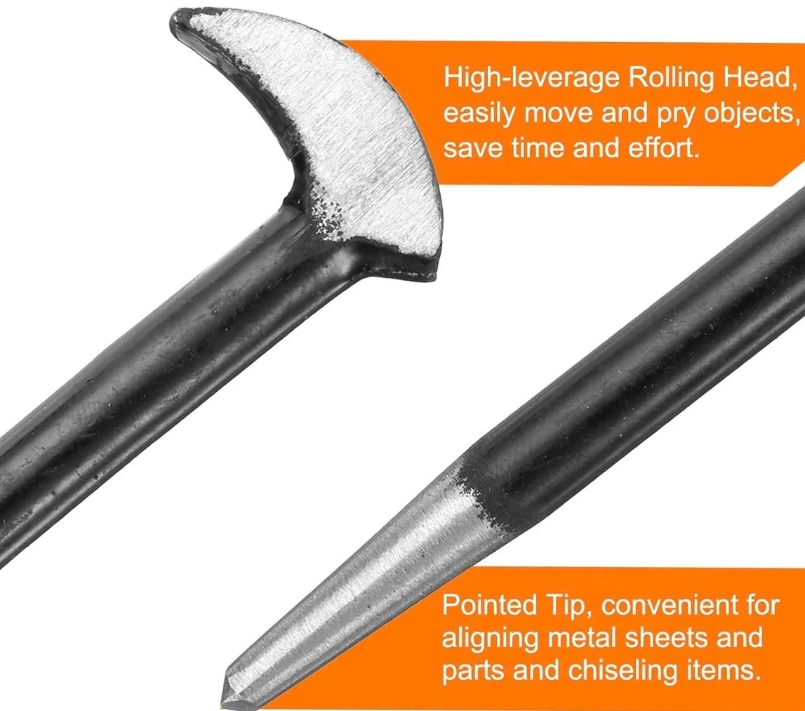 特徴 - 片側はハイレバレッジのローリングヘッドデザインを採用し、レバレッジの原理を利用して、物を簡単に移動やこじ開けができ、時間と労力を節約します。片側には尖った先端があり、金属板や部品の整列やアイテムの彫り込みに便利です。こじ棒はバリを取り除くために磨かれており、快適なグリ ップを保証します。