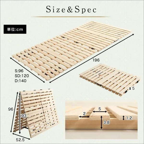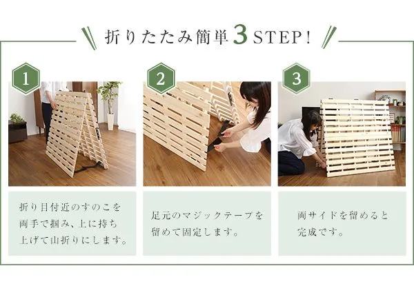 すのこベッド 二つ折り式 檜 ひのき 室内干し コンパクト セミダブル 一人暮らし 二人暮らし