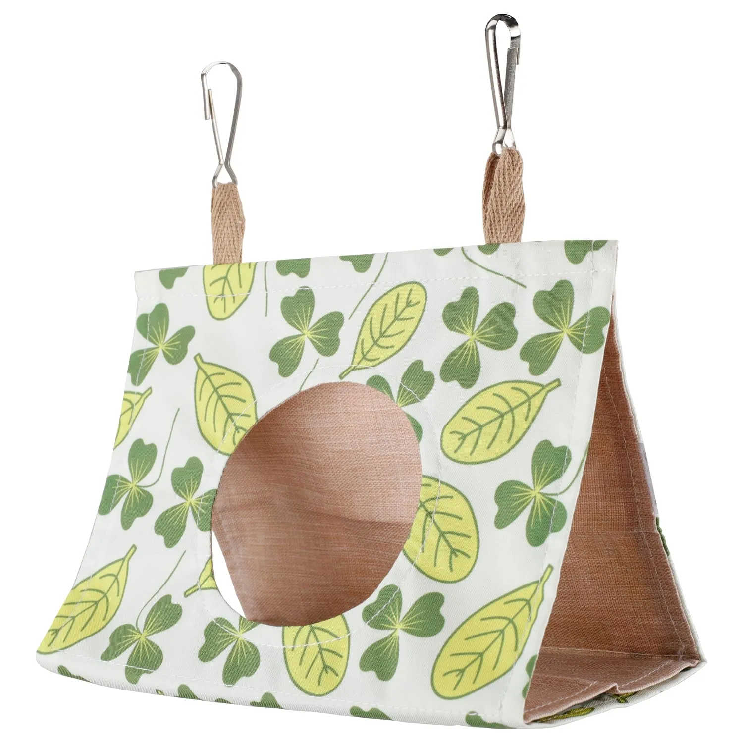 新品 バードテント セキセ オカメインコ おもちゃ 小鳥の巣 バードテント 文鳥 ブランコ 三角鳥用ハンモック バードテント 寝床 春夏用 交換式パッド付 (クローバー多々 S)