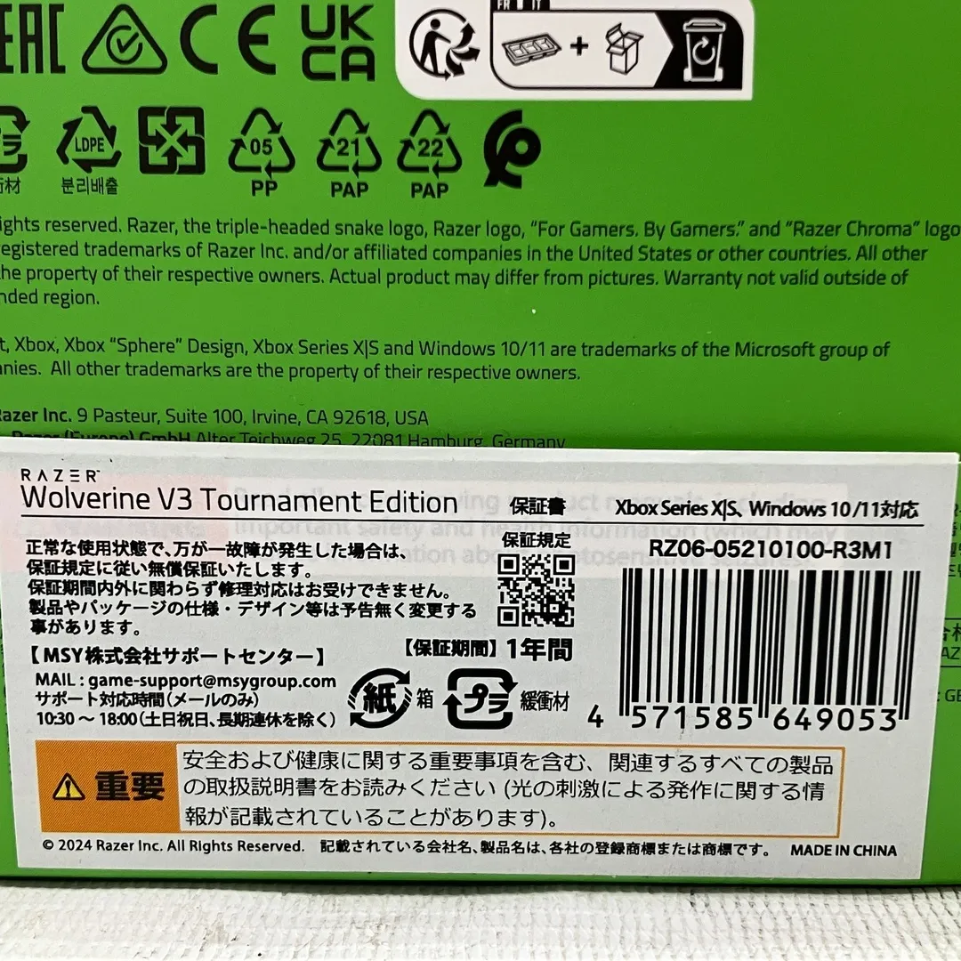 こちらは「Razer RZ06-05550100-R3M1 Wolverine V3 Tournament Edition XBOX PC ゲーム コントローラー Eスポーツ PC周辺機器 レイザー 未開封 未使用 」でございます。