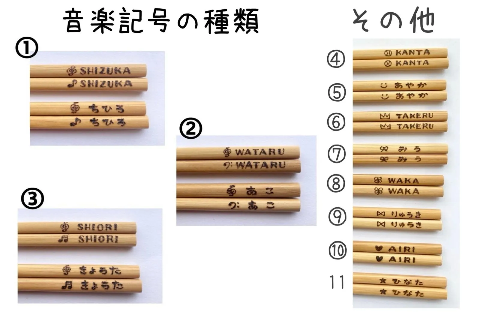 【木製*名入れ・文字入れ箸 (子ども用)】音楽記号 スマイル リボン 星…送別ギフト 卒園ギフト 入学準備 記念品