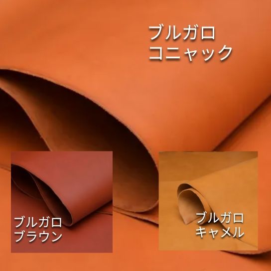 お写真は、栃木レザーの候補、以前使用していた革(ミッスーリ)のマロンとキャメル比較画像、ブルガロの同系色比較ザ画像とおよそ中間色のコニャックの画像を掲載しております。