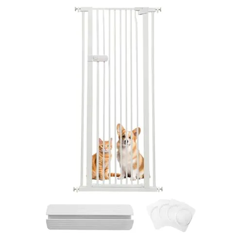 RAKU ペットゲート 猫 高さ155cm 隙間間隔3.5cm ハイタイプ 突っ張り式 取付幅61.5-246cm選択可能 前後90°開閉 オートクローズ 専用スロープ付き 子猫通り抜け防止 穴開け不要 取付簡単 ベビーゲート (ホワイト, 取付幅66.5★m