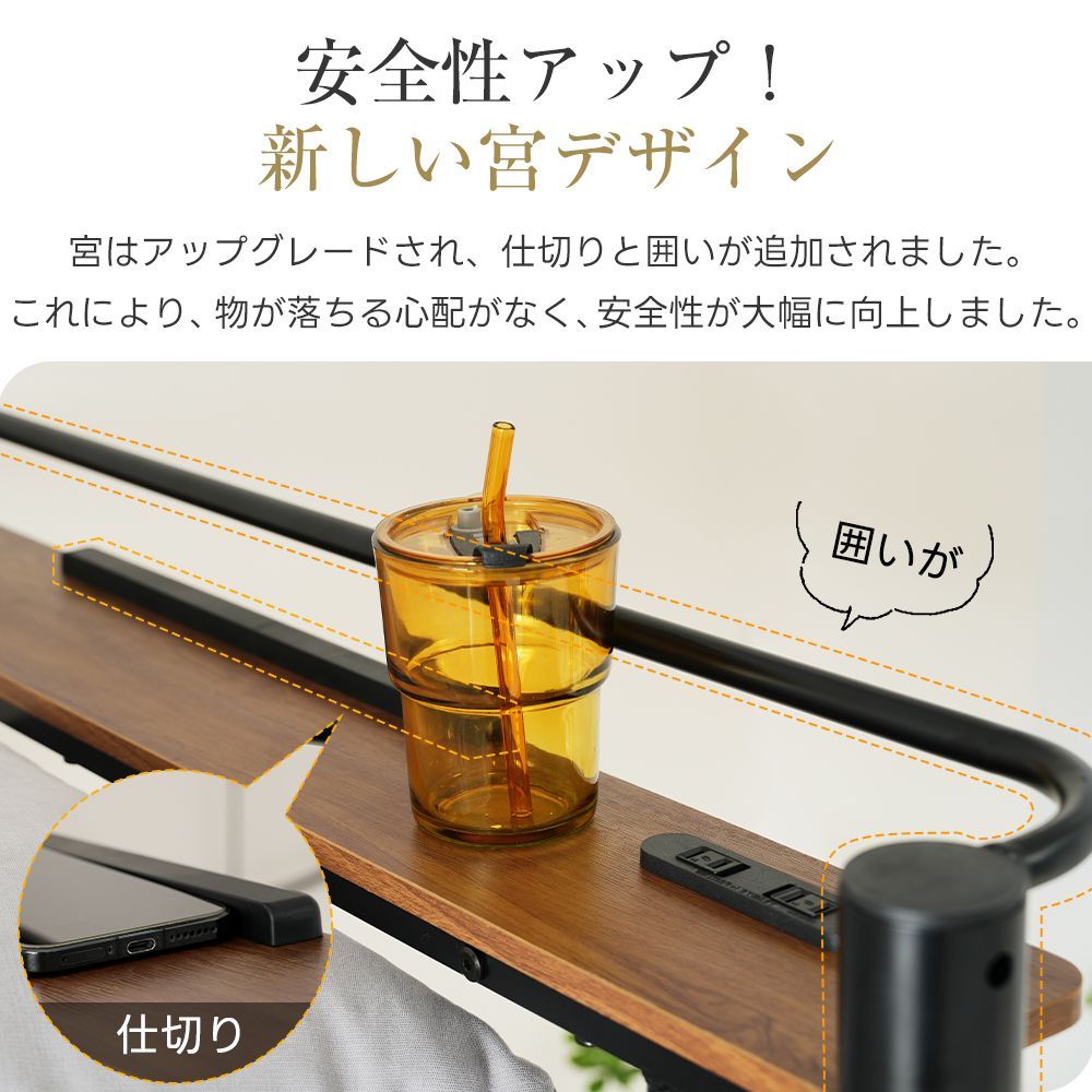 【安全性アップ!新しい宮デザイン】宮はアップグレードされ、仕切りと囲いが追加されました。これにより、物が落ちる心配がなく、安全性が大幅に向上しました。耐荷重:10KG その上、コンセント付き、充電可能!携帯、電源が切れた!わざわざ階段を下りるなんで、面倒くさい。1500Wまでのコンセント付きで寝ている間にスマートフォンやIPADを充電できます。
