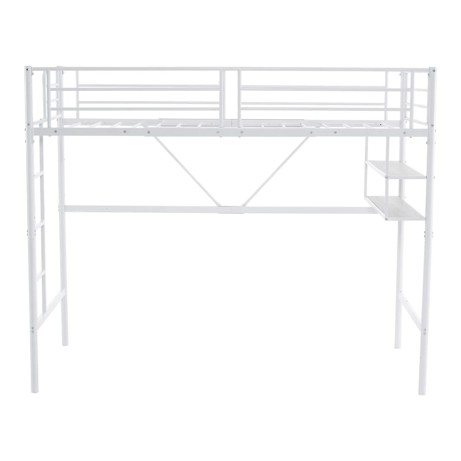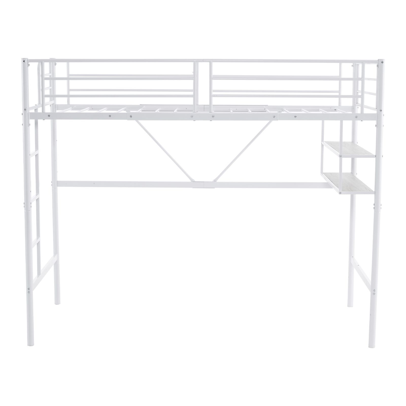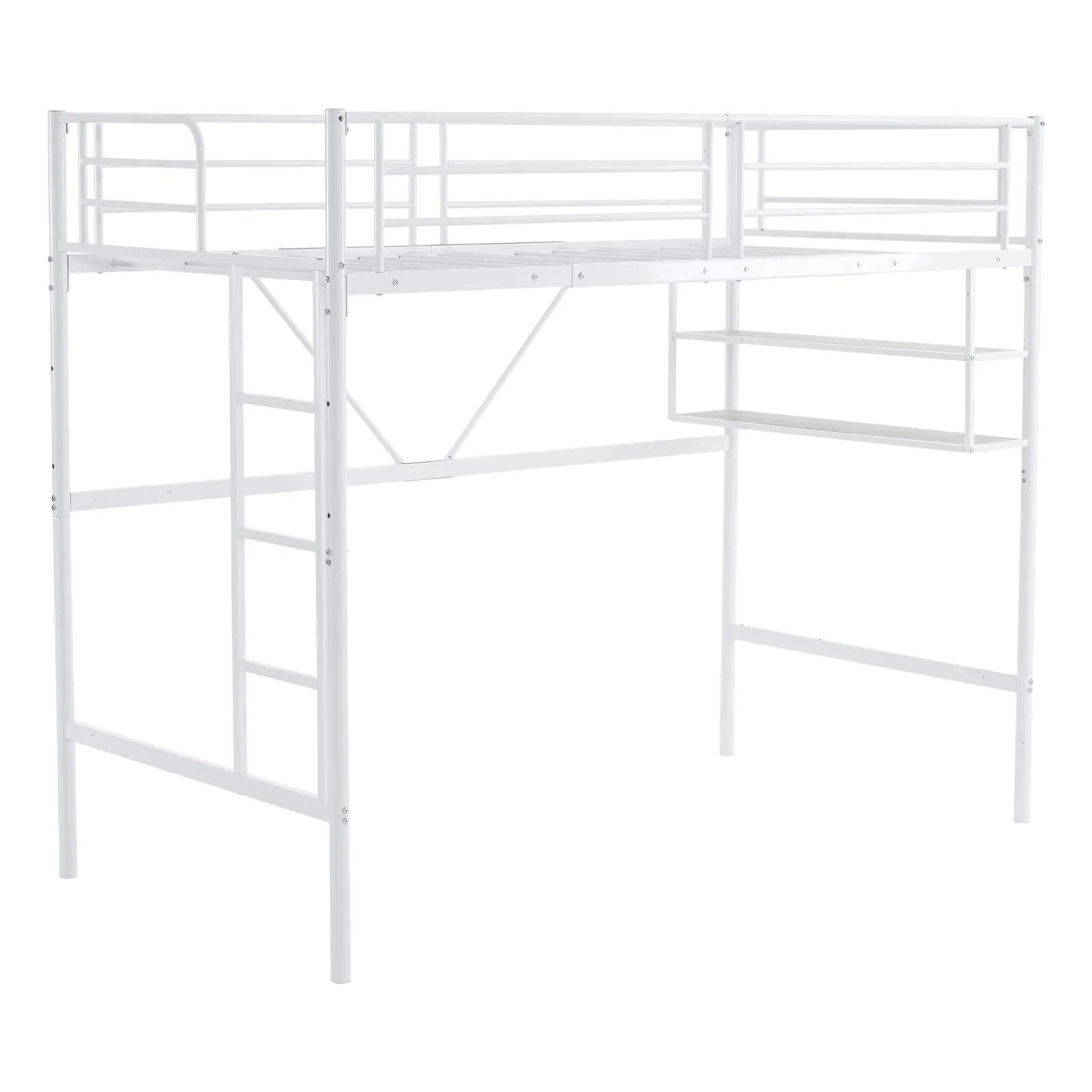 タイムセール!ロフトベッド サイド棚付き シングルサイズ 北欧風 スチール製 省スペースで下収納に便利 BLACK✕WHITE