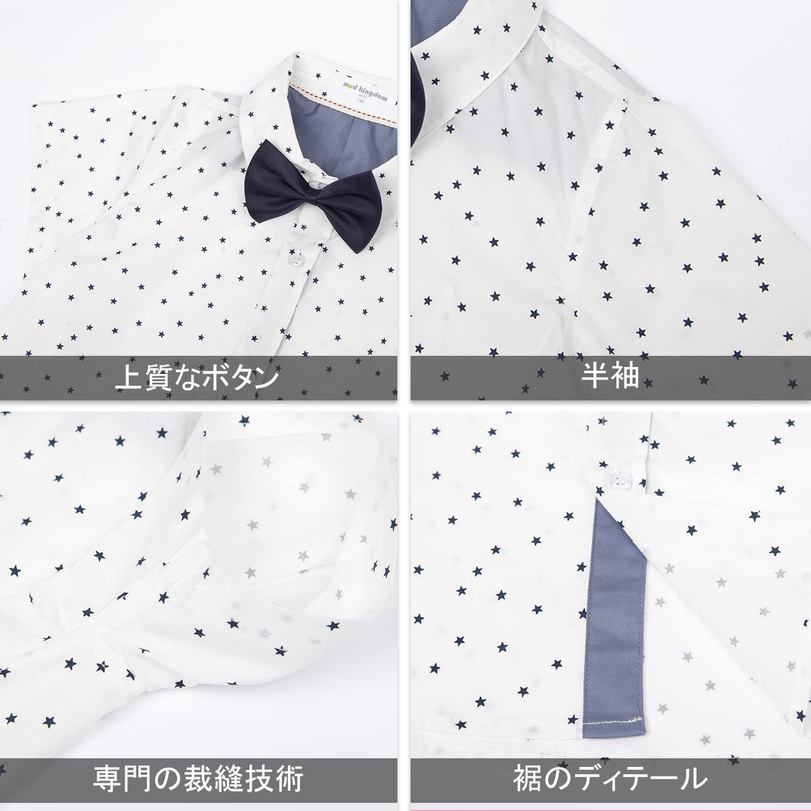 [LittleSpring] キッズ ネクタイ付きシャツ 半袖 シャツ yシャツ ワイシャツ 子供服 男の子 フォーマルシャツ 結婚式 発表会 卒業式 入学式