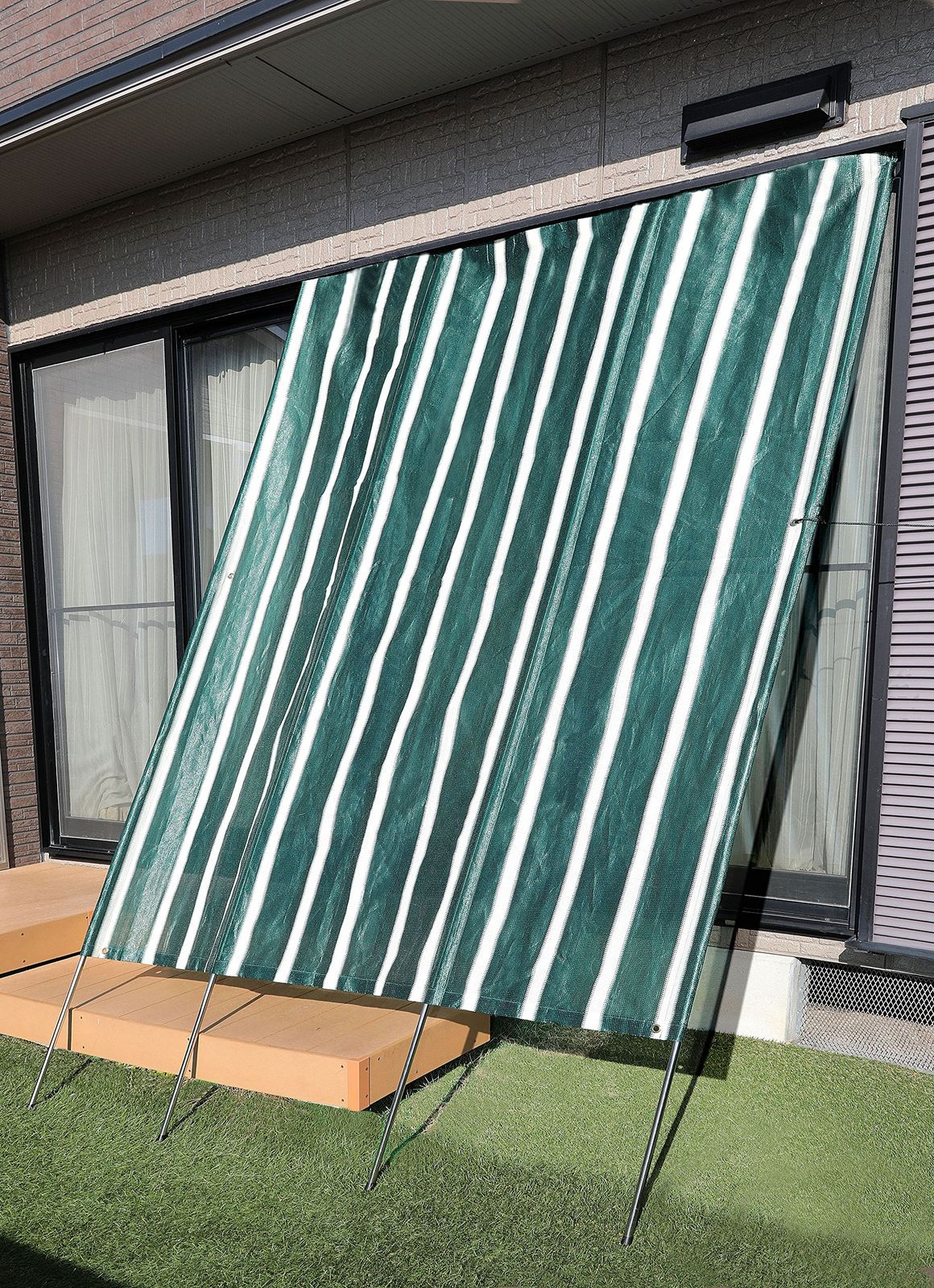 リビングアウト(Living Out) 日よけ グリーンストライプ 奥行200×高さ280×幅3cm 幅2m 日除け 目隠し サンシェード 簡単設置 工具不要