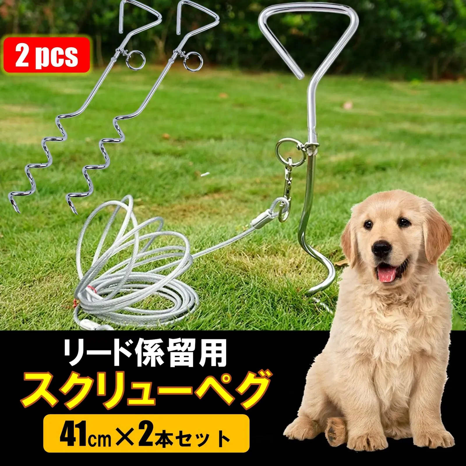 新品 NOELAMOUR ドッグポール スクリューペグ 2個セット 係留ステッキ リード ワイヤー 埋め込み アンカー 犬 散歩