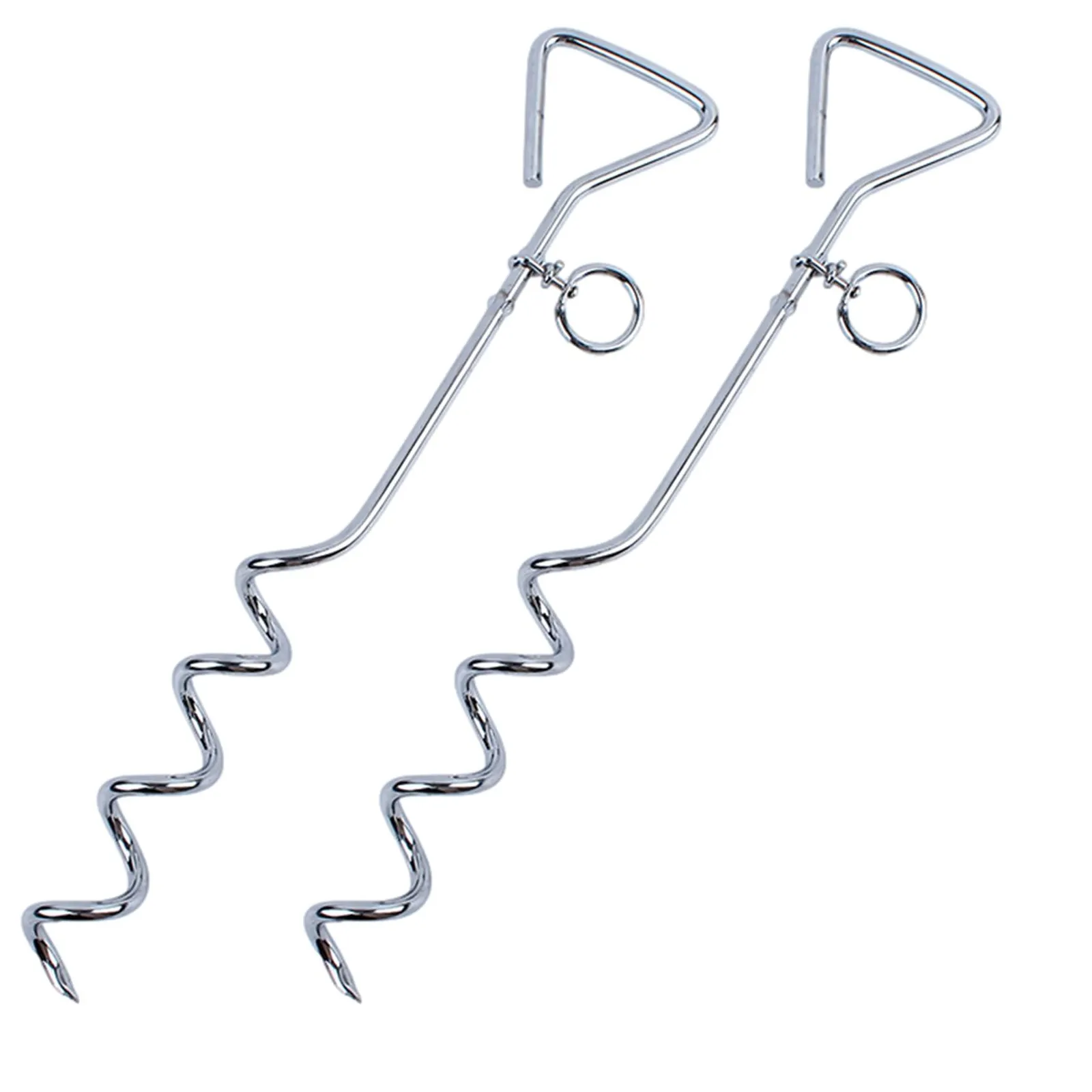 愛犬の係留用、埋め込み式スクリューペグ41cm2本セットです。ハンドルを回しながら地面に埋め込み設置します。キャンプやアウトドア、公園などワンちゃんを係留しておくのに便利な係留ステッキです。スクリューがしっかりと地面に食い込むため抜けづらいのが特徴です。