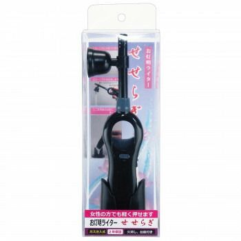 ろうそくの火消しがついたお灯明ライター。女性でも軽く押せるらくらく着火仕様です。