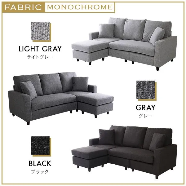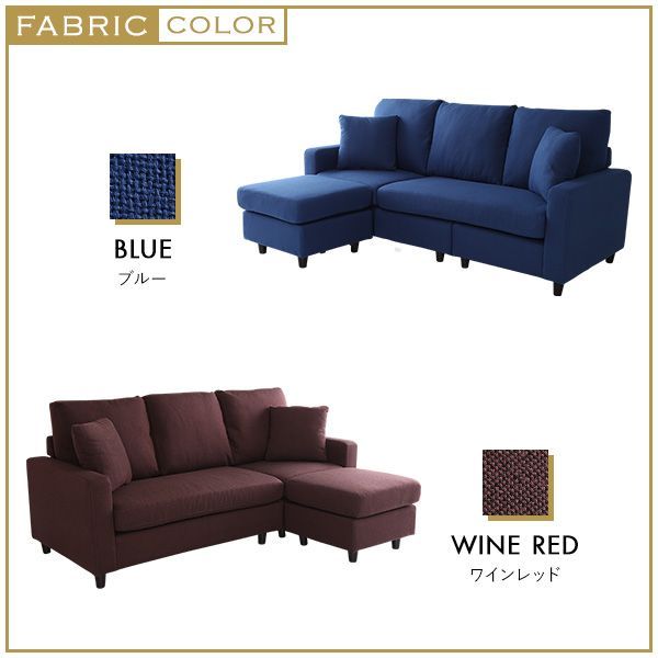 カウチソファ 3人掛け PVC ファブリック オットマン ロータイプ ファミリー 選べる8色