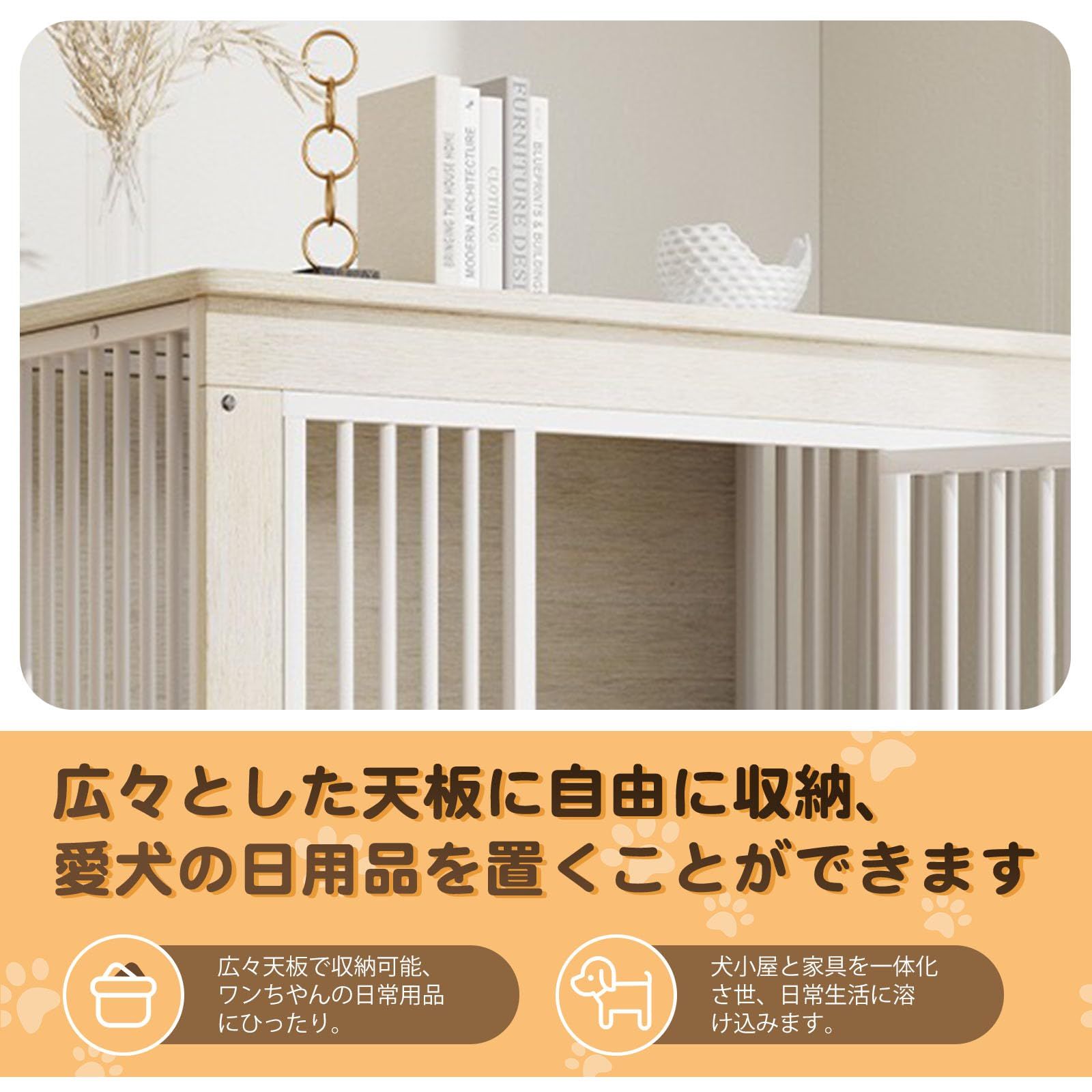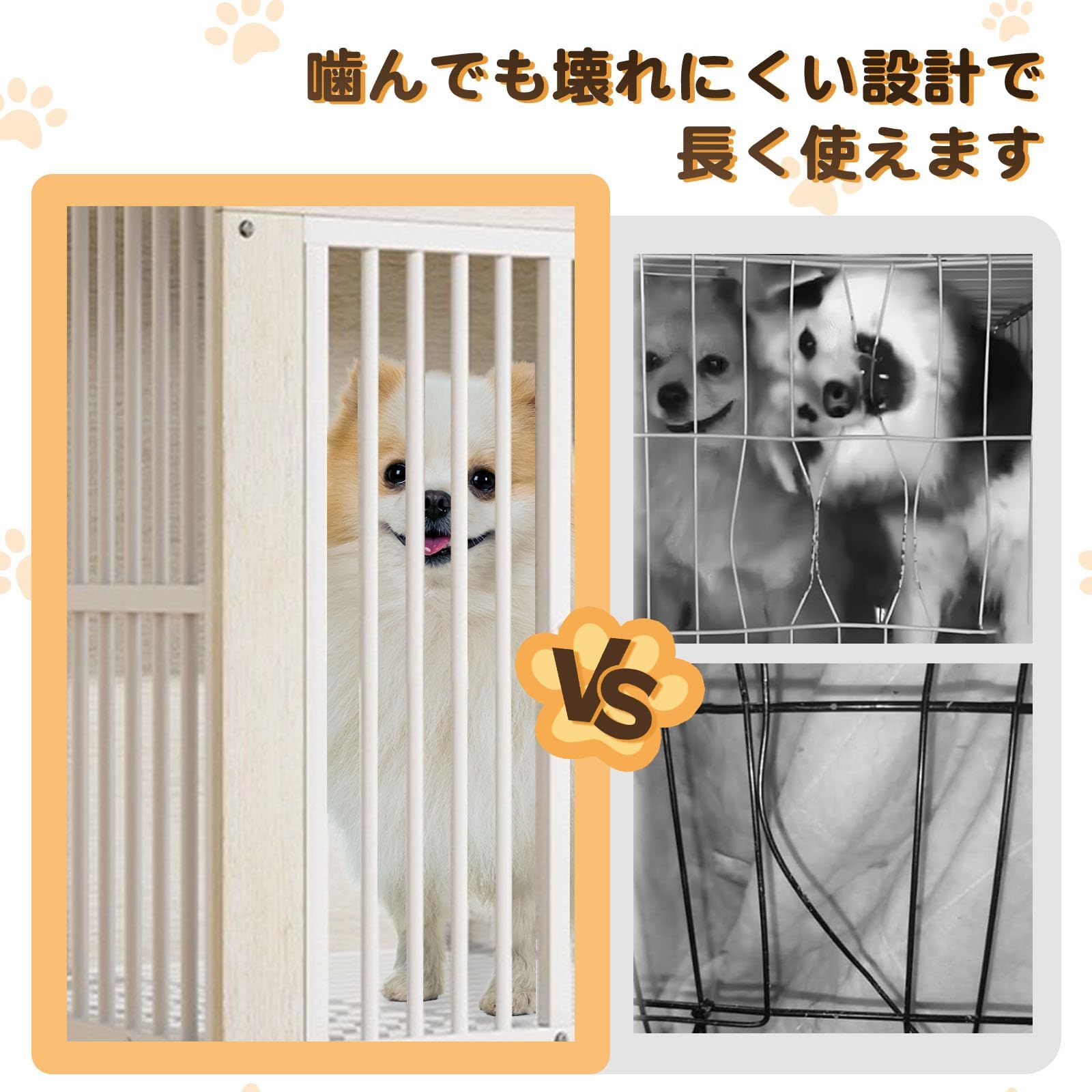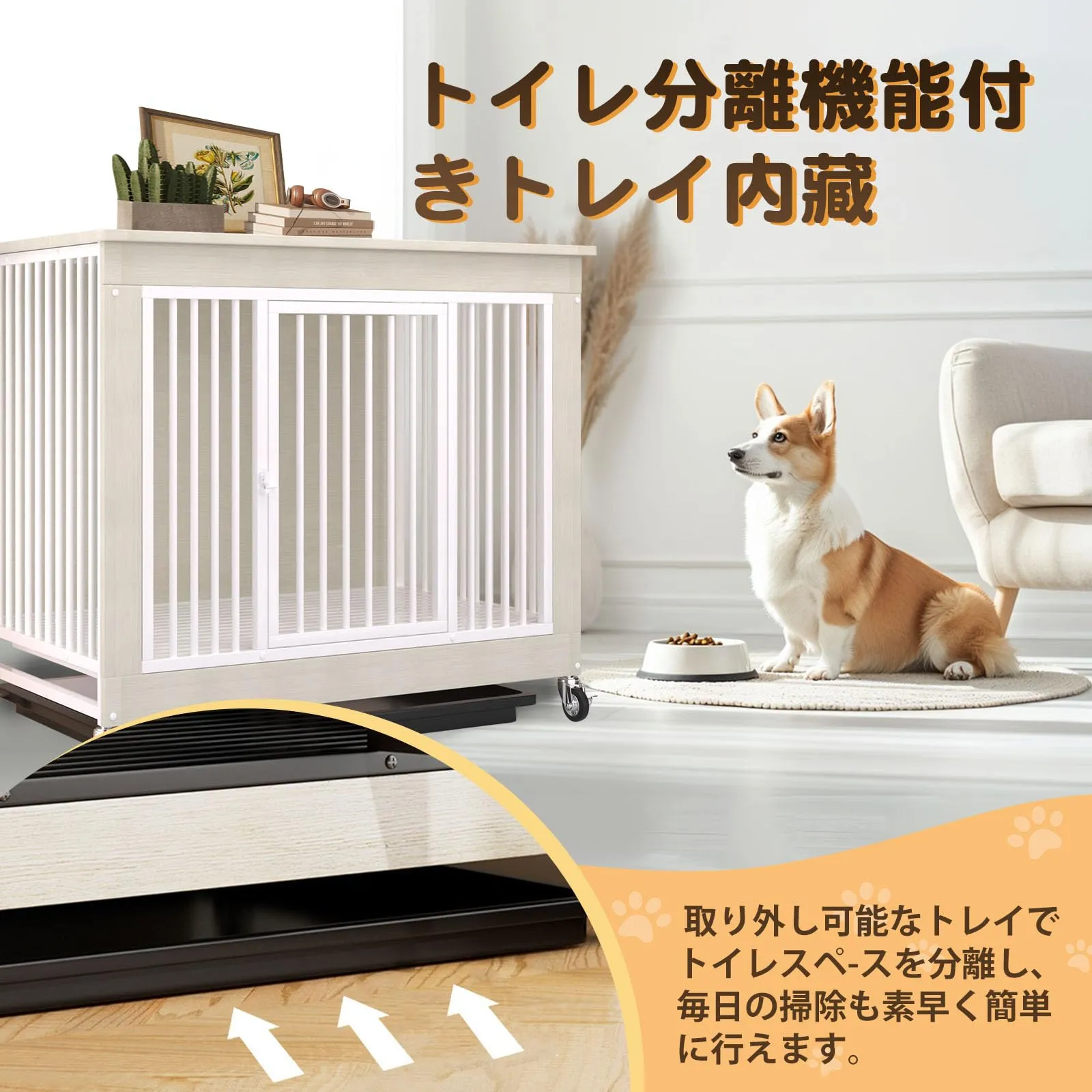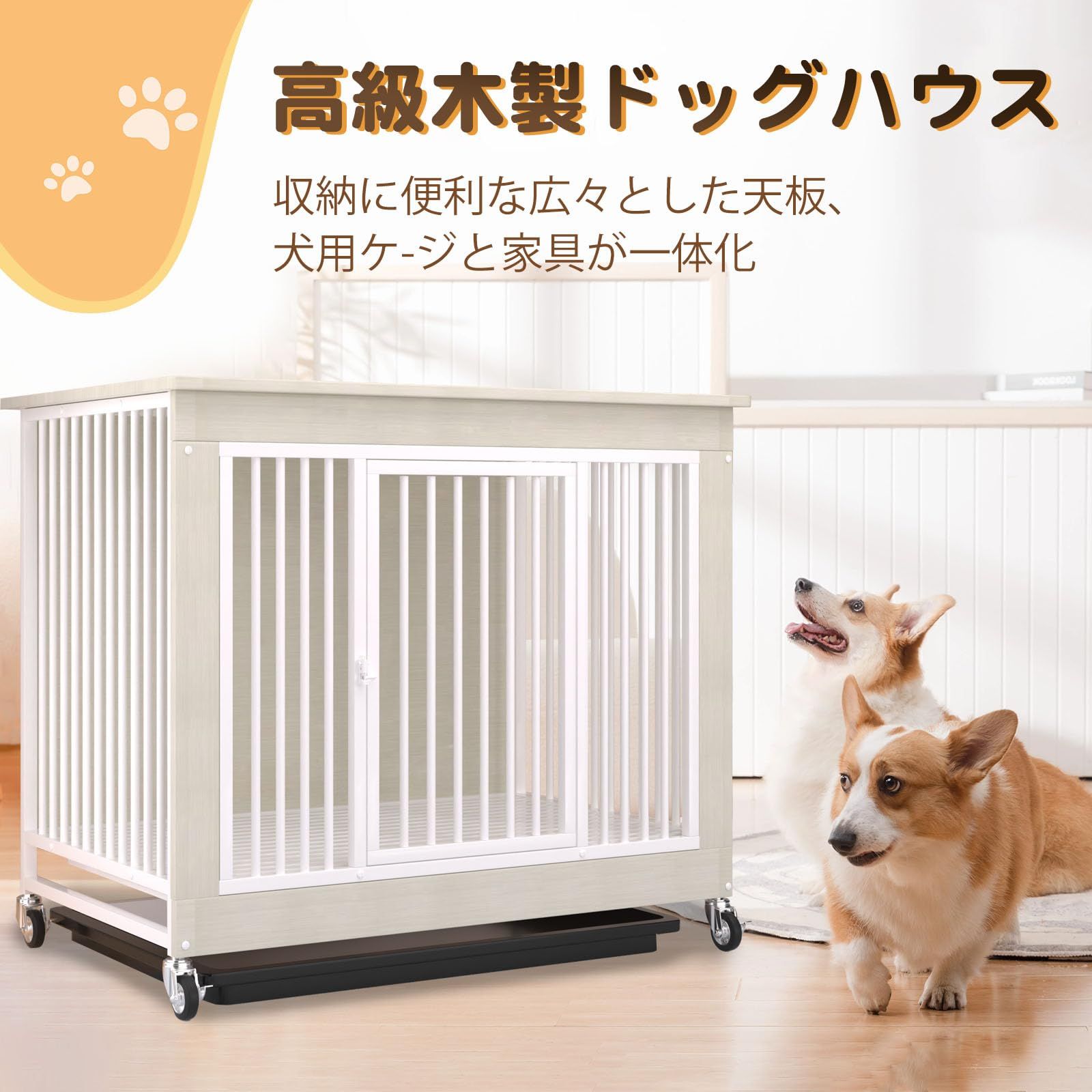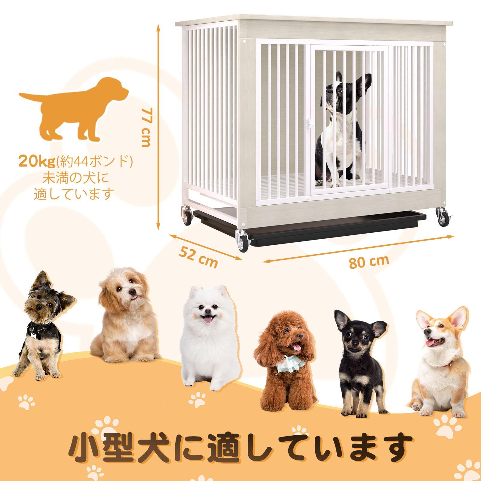 新品 犬ケージ 小型犬 屋根付き ウッディサークル 犬小屋 中型犬 キャスター付き 木製 トレー付き 幅 80×奥行52×高さ77cm(ホワイト S)