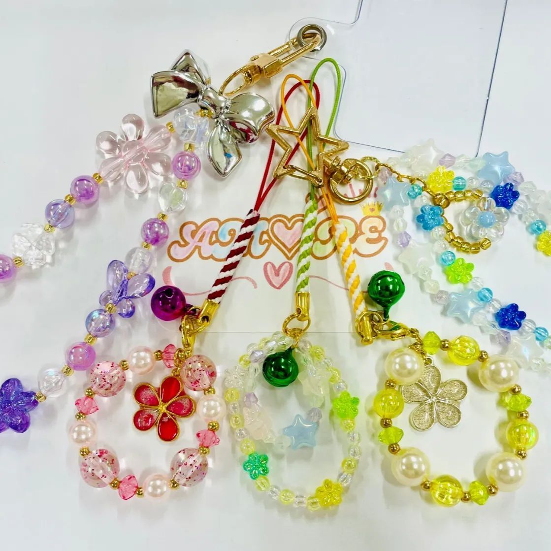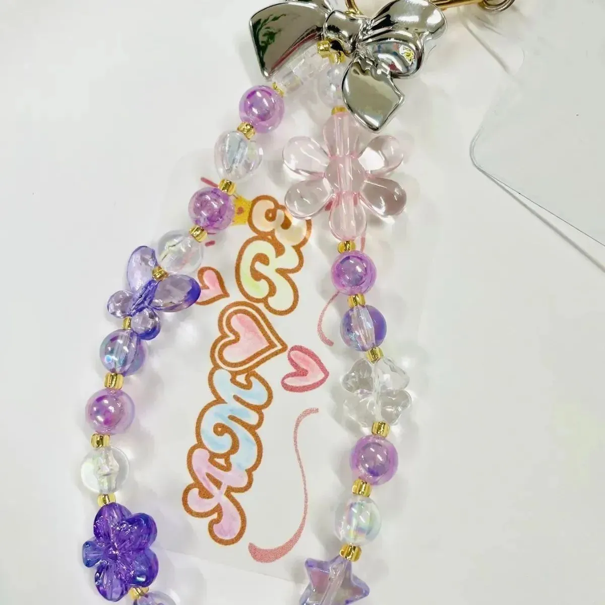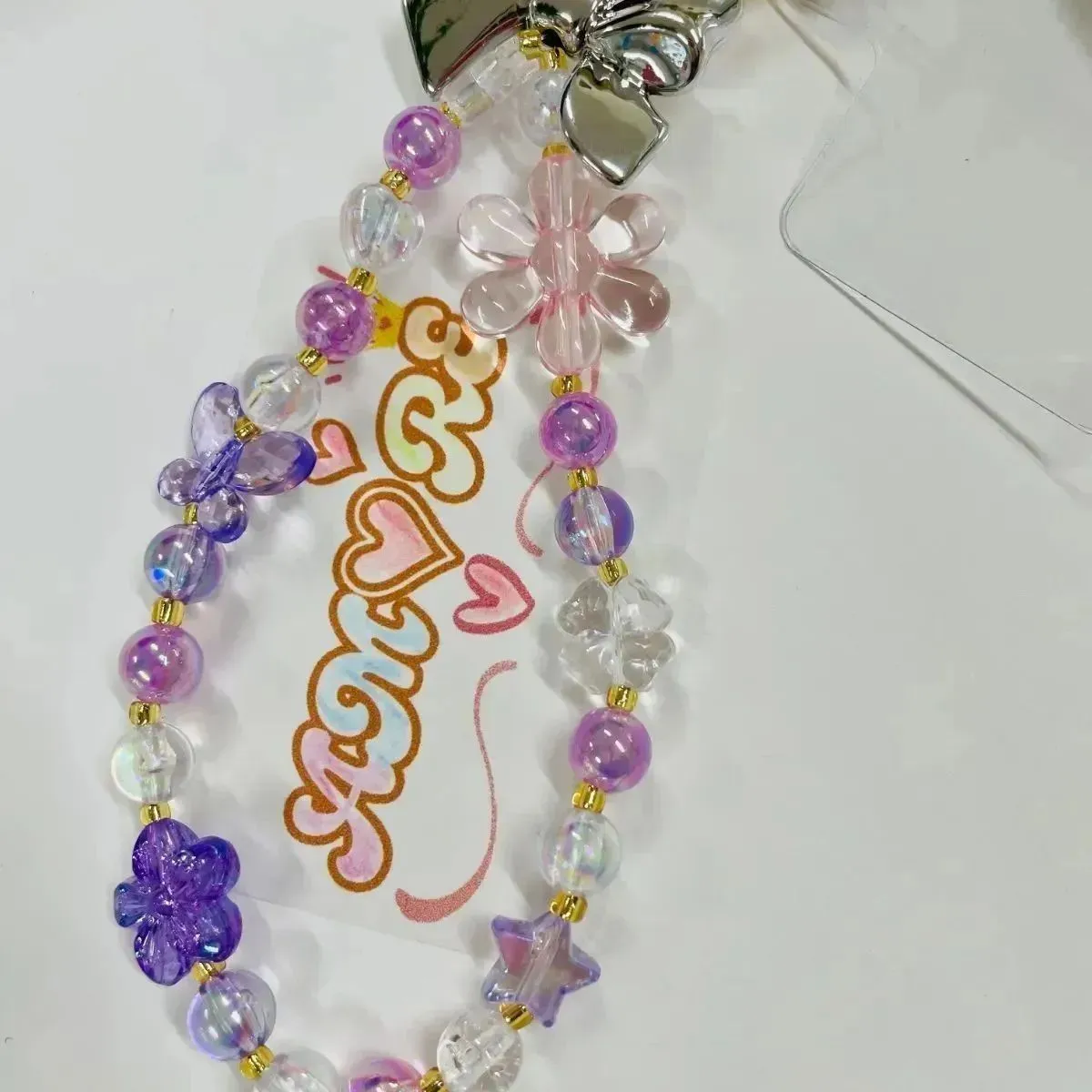 ✨新品✨パステルカラーパープル基調 花型、星型ビーズと丸ビーズ ストラップ。260115-01