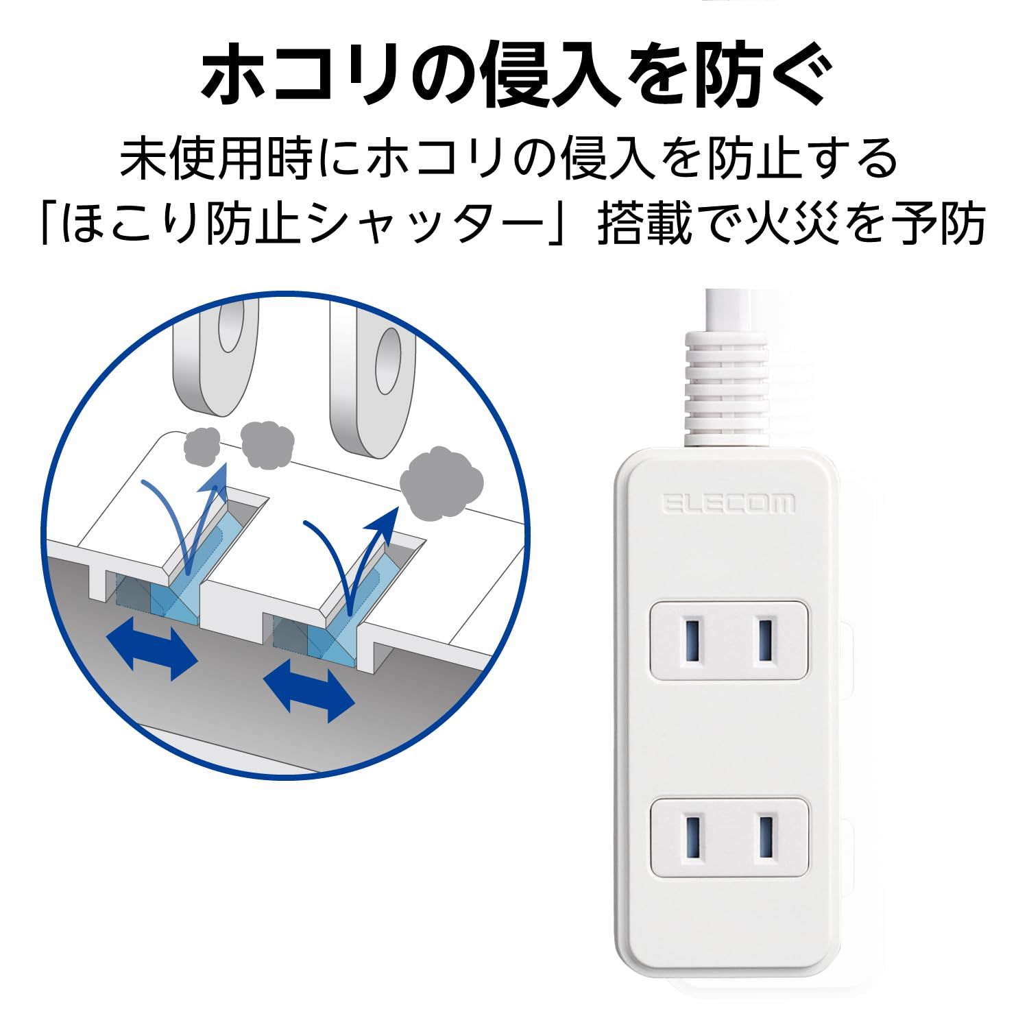 新品 エレコム 電源タップ 雷ガード スウィングプラグ ほこりシャッター付 3個口 2m ホワイト T-KST02-22320WH