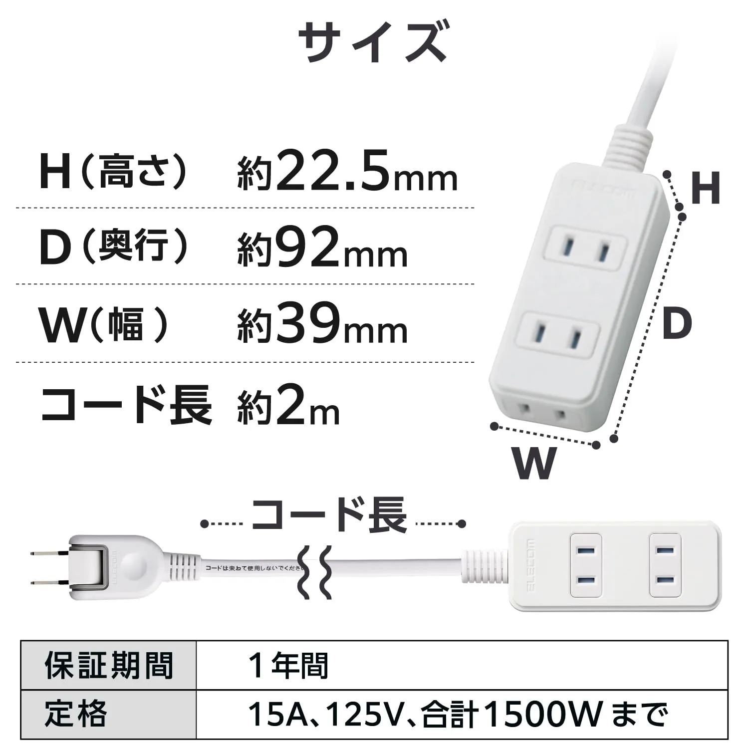 ■外形寸法:幅39mm×奥行92mm×高さ22.5mm ※コード部分及びプラグ部分を除く