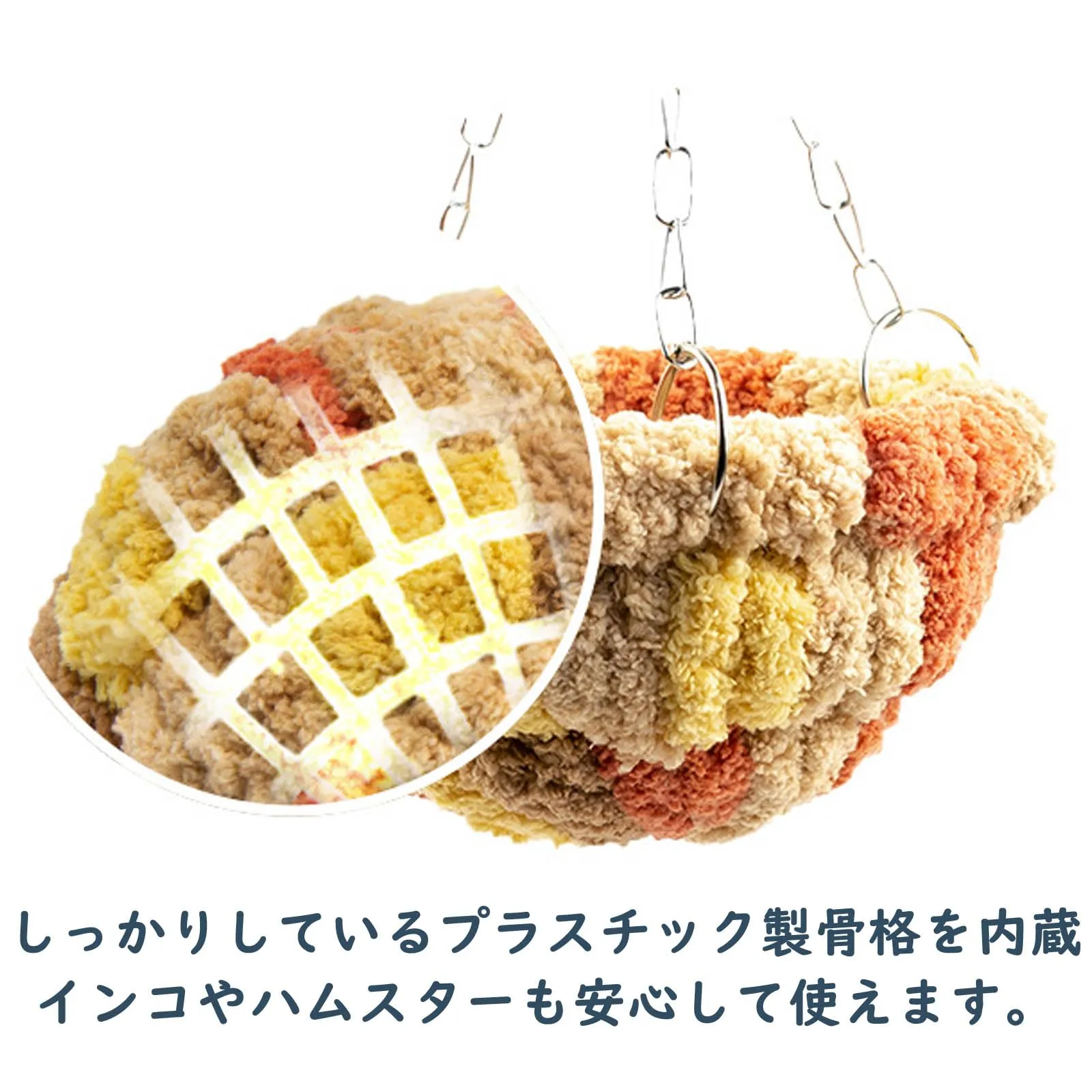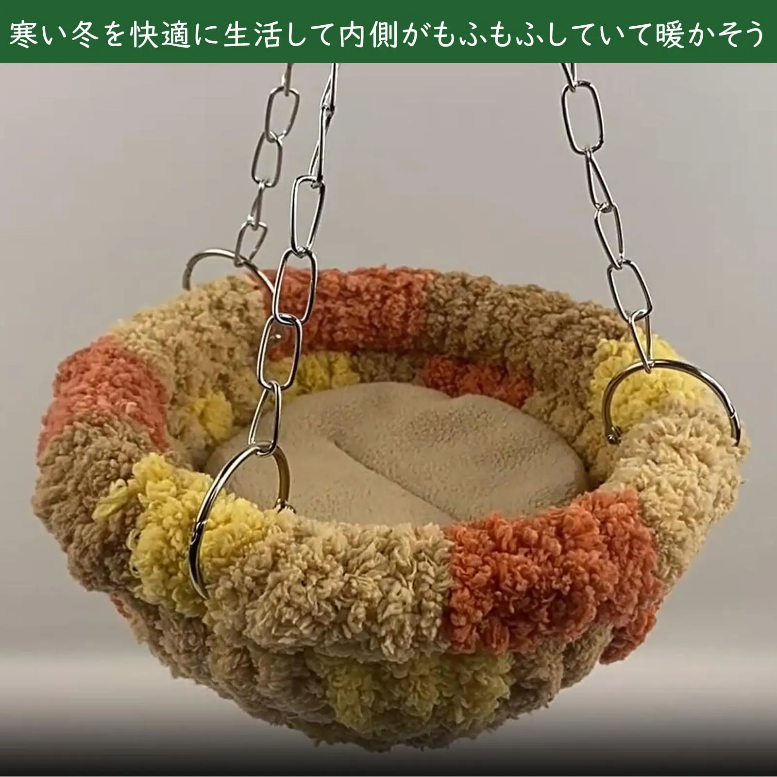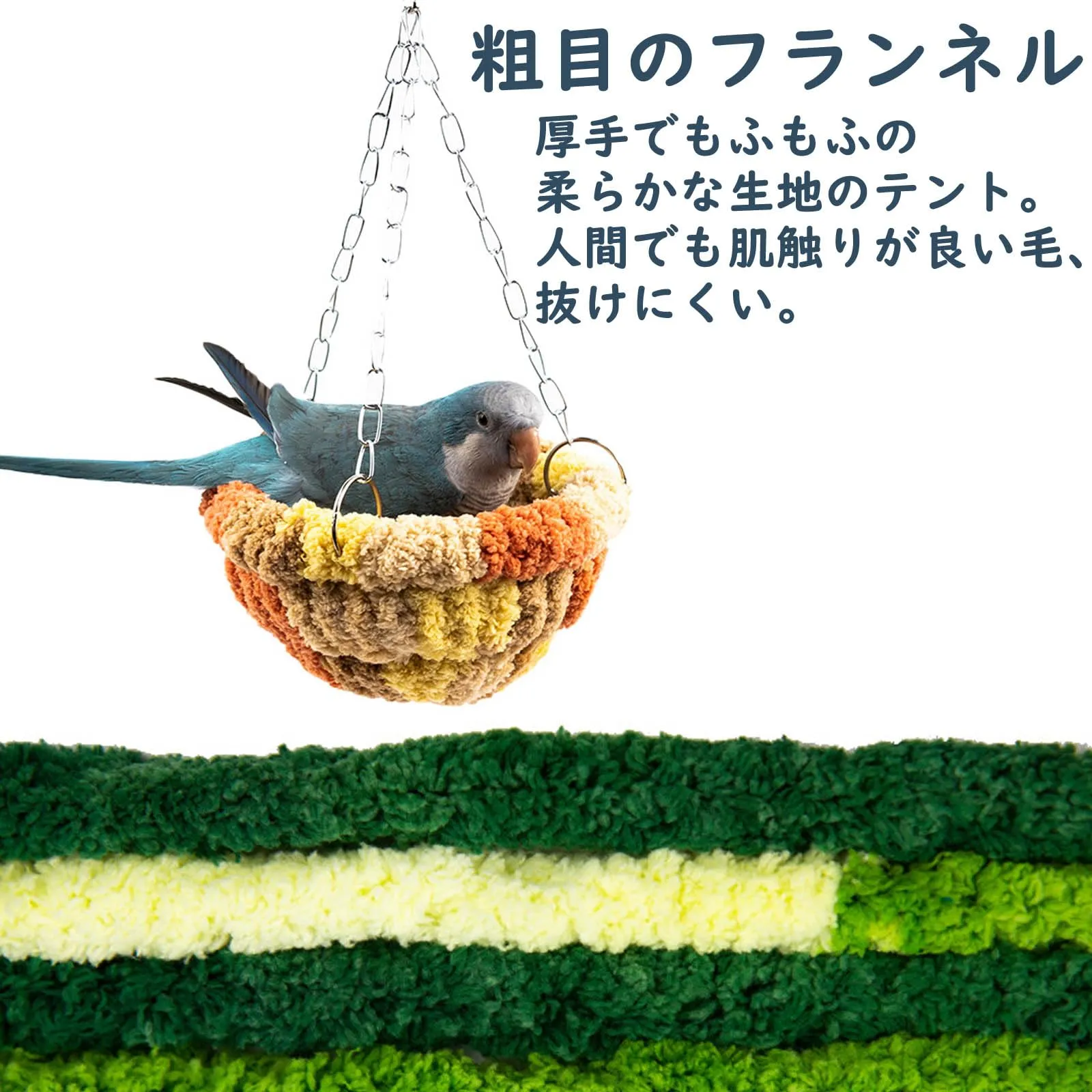【優しい素材】しっかりしているプラスチック製骨格を内蔵と素材には厚手でもふもふの柔らかな生地のテント。インコやハムスターも安心して使えます。寒い冬を快適に生活してもらいたいのです。内側がもふもふしていて暖かそうで冬場の寒い時期には鳥たちも暖を取れいい。