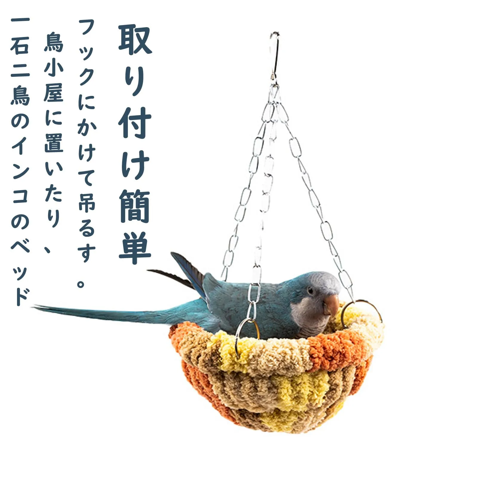 【取り付け簡単】一石二鳥のインコのベッドは2種類の設置方法が出来ます。鳥小屋に置いたり、フックにかけて吊るす。上部のフックで引っ掛かけると小鳥さんの可愛い円形お部屋。安定感もしっかりあります。バードハンモックは水で洗うことができ、乾燥後に使用できます。鳥かごのスペースを節約できます。 ・冬に使う鳥用の寝床。 ・中はかなりフワフワ。 ・鳥かごの巣は、鳥にとって非常に魅力的な鳥の巣の形を模倣しています。 ・鳥が登ることができる鳥かごに小さな巣を設置し、つつくことで退屈を和らげます。 ・インコにとって動きやすい配置、のびのびと遊べるスペース、安定した足場を確保しないといけません。 ・ネジを締めることで、鳥かごのどの位置にも簡単に取り付けることができます。 ・鳥の繁殖巣は、壁や鳥かごに簡単に設置できます!カナリア、オウム、小さなオウム、インコ、オカメインコ、コニュア、ラブバードなどの小鳥に暖かい休息と繁殖の家を提供します。 配送について、商品のサイズや配送先都道府県によって最適な配送業者を選択しております。 業者・配送方法の指定は承れません。ご了承ください。 万が一の不着、紛失、誤配送の場合など、最後まで責任もって対応致しますのでご安心下さい。 宜しくお願い致します。