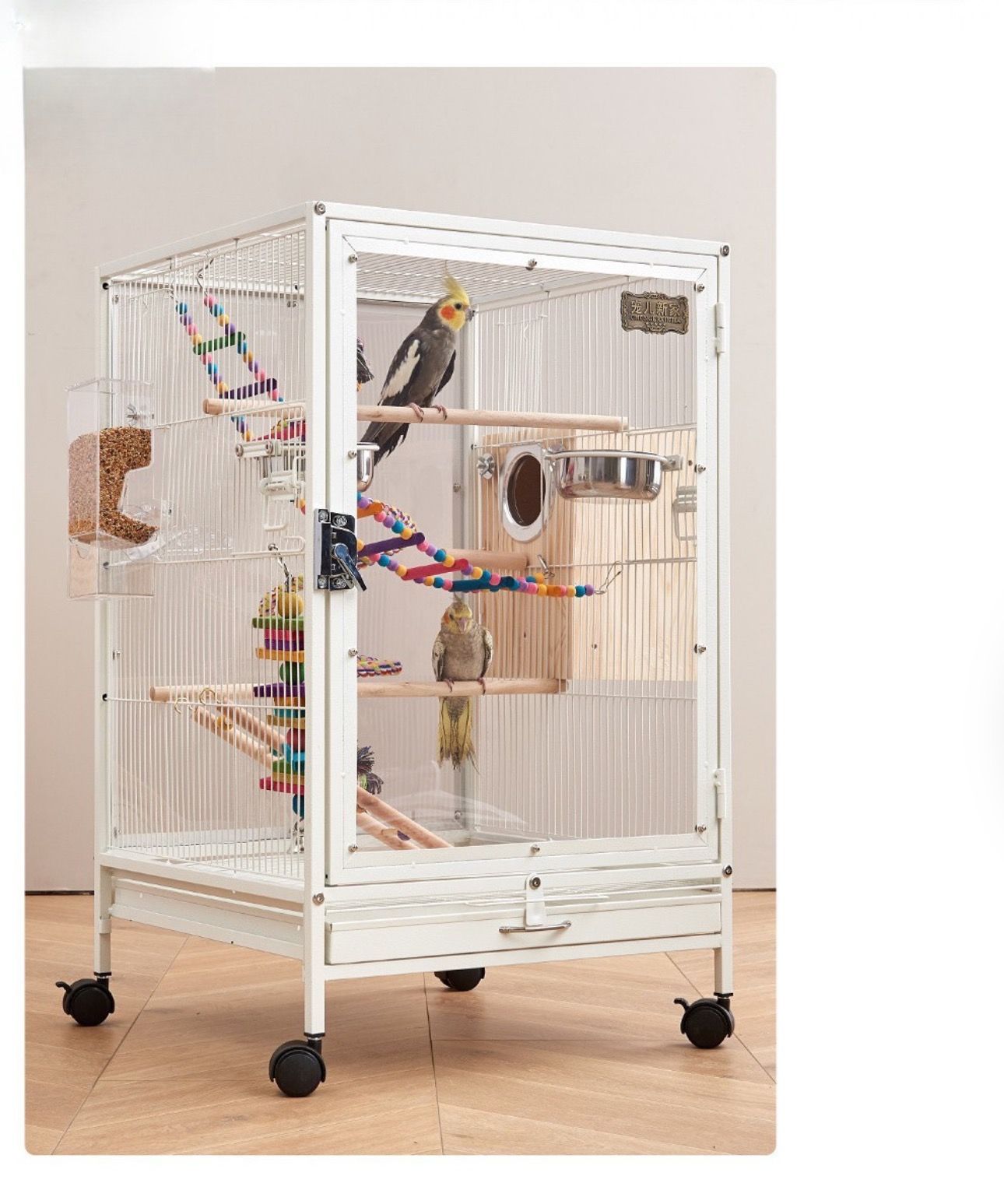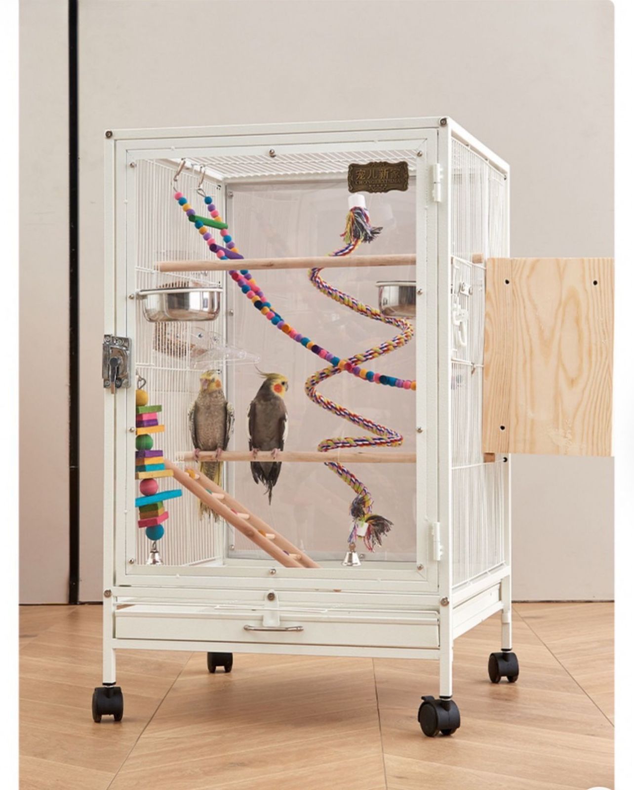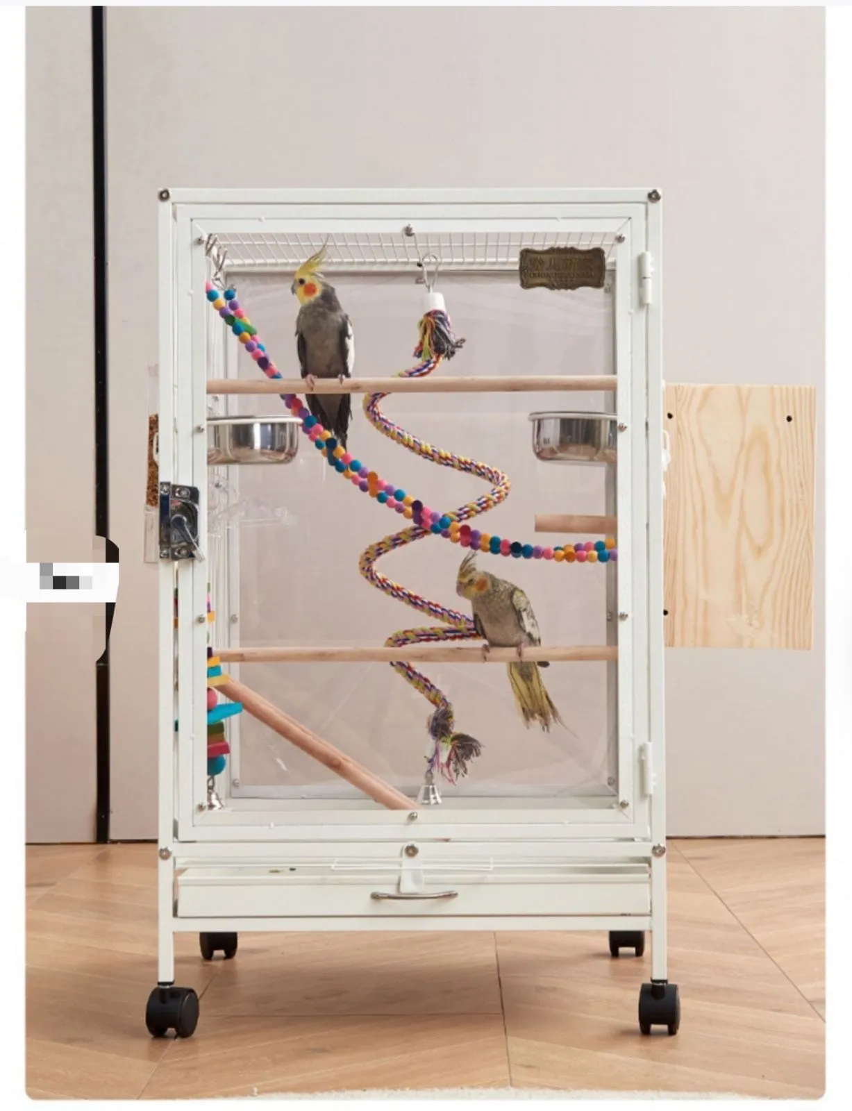 特大ドア: フロントドアは非常に大きく、オウムが簡単に出入りできます。 シーンのアレンジやおもちゃの置き方もオーナー様が簡単に。