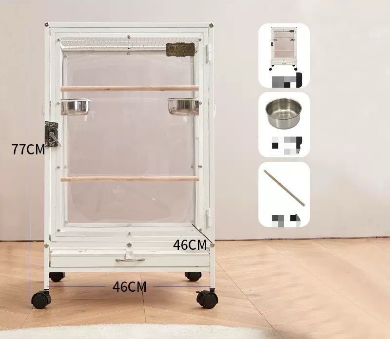 大好評☆クリアアクリル鳥かご 大型インコ 複数飼い ケージ セキセイインコ ゴザクラインコ オカメインコ 鳥籠 外寸W46×D46×H77cm