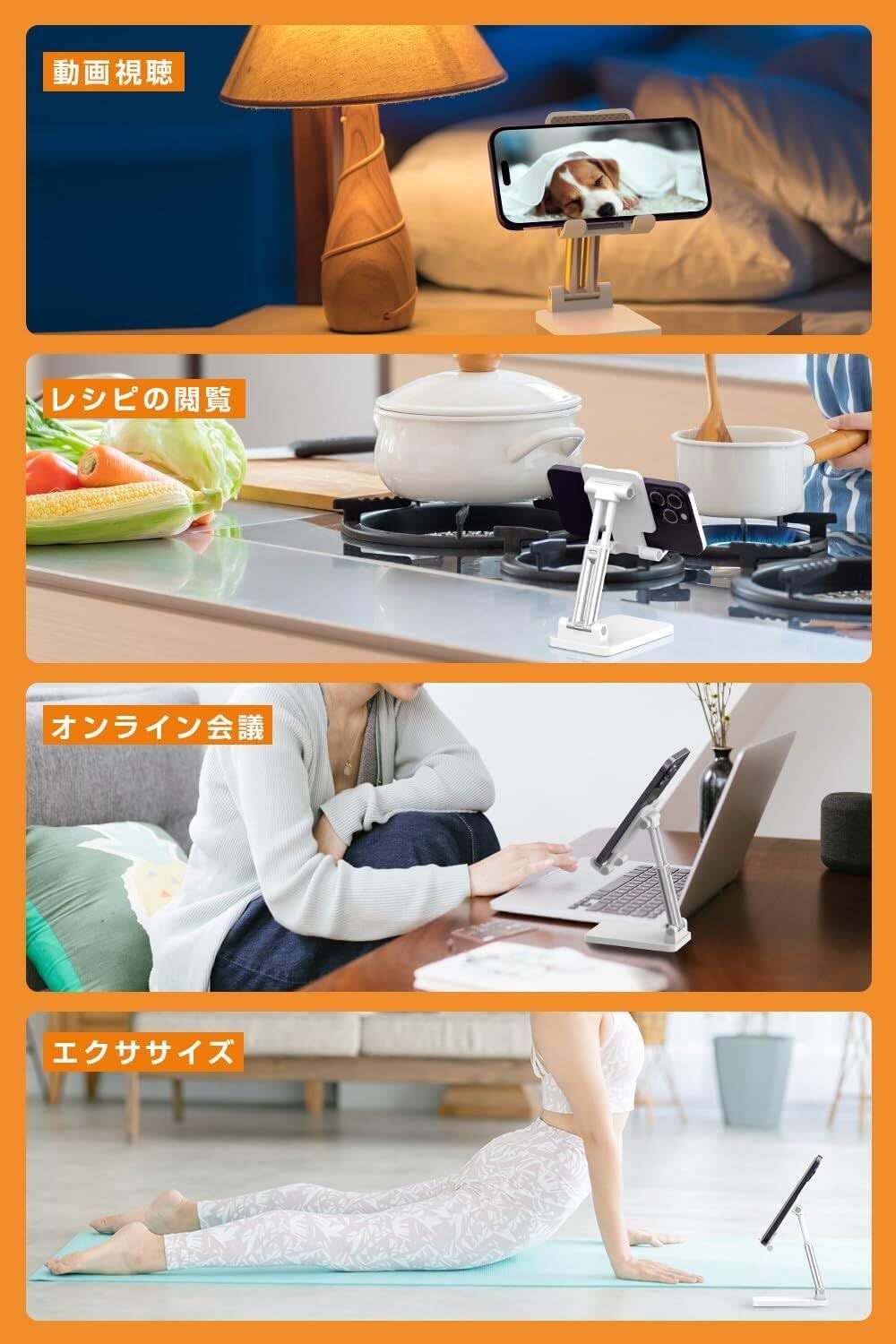 【長時間出行必携・安定】 折り畳み 携帯スタンド 卓上 スマホ スタンド 高度角度調整可能 phone stand スマホ置き 滑り止め スマホ立て 伸縮 ios 16/15/14/13/12/11 Pro Galaxy Xperia Xiaomi Huawei ASUS OPPO などのAndroid機種 アルミ合金素材 高さ調整 携帯に便利 薄型