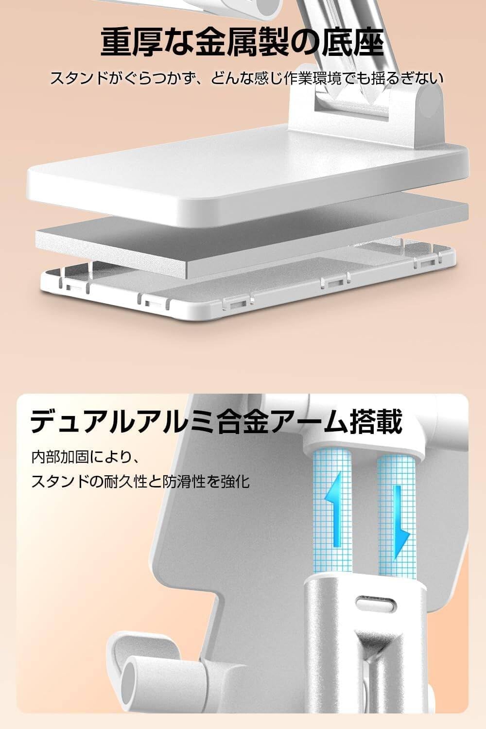 Galaxy Pro 16/15/14/13/12/11 Xperia ios Xiaomi 伸縮 スマホ立て Huawei 滑り止め ASUS スマホ置き stand OPPO phone 高度角度調整可能 などのAndroid機種 スタンド アルミ合金素材