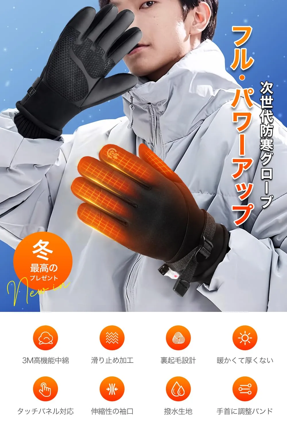 【撥水・防風・防寒のトリプルプロテクション】表地には高密度撥水素材を採用し、水滴が繊維に浸透しにくいロータス効果を実現。多層構造が冷気の侵入を防ぎ、強風や雪の日でも快適。レインコートとの併用で、雨天時の通勤や屋外作業も安心です。冬の旅行やアウトドアにも欠かせない一品です。 今季登場した最新の防寒手袋は、デザイン性と機能性の両面で大幅にアップグレード。外側には防水加工生地を採用し、雨や雪の日でも手をしっかり保温。中間層には高性能な3Mシンサレートを使用し、一般的な綿よりも高い断熱性を実現。内側は柔らかな起毛素材で肌触りが良く、さらに保温性を向上。手のひら部分には高品質な合成皮革を採用し、耐久性とグリップ力を強化。自転車やバイクの走行にも最適です。 最後までご確認頂き誠にありがとうございました。 ご確認頂き、ご購入いただけましたら幸いです。 何かご不明点などがございましたらお気軽にメッセージからお問い合わせ下さい。