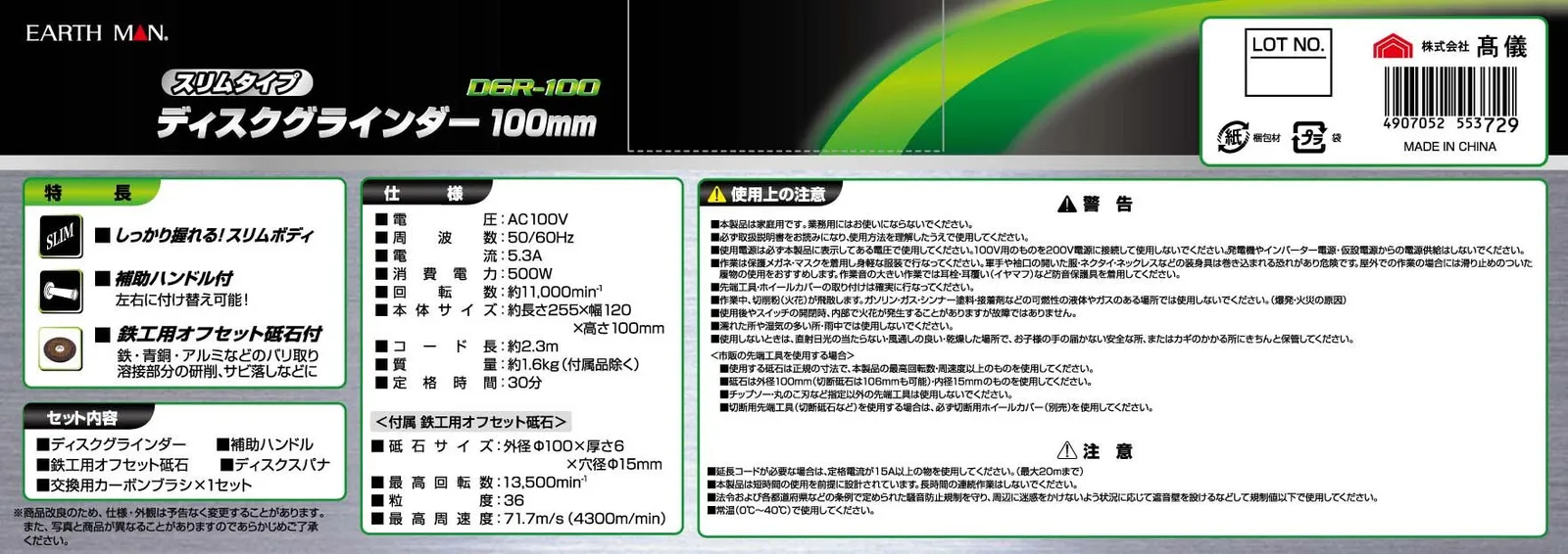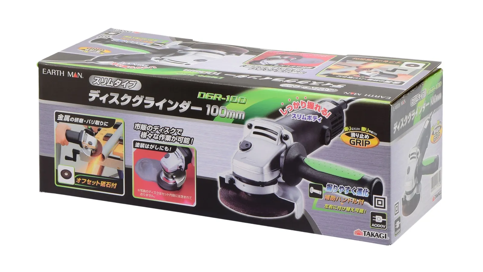 高儀 EARTH MAN ディスクグラインダー スリムタイプ 100mm DGR-100A
