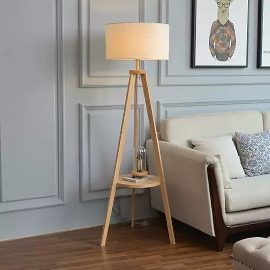 大好評☆フロアランプ 棚付き 高さ155cm 三脚スタンド LED電球E27付き 間接照明 雰囲気ライト 足踏みスイッチ ナイトライト 常夜灯 ルームライト