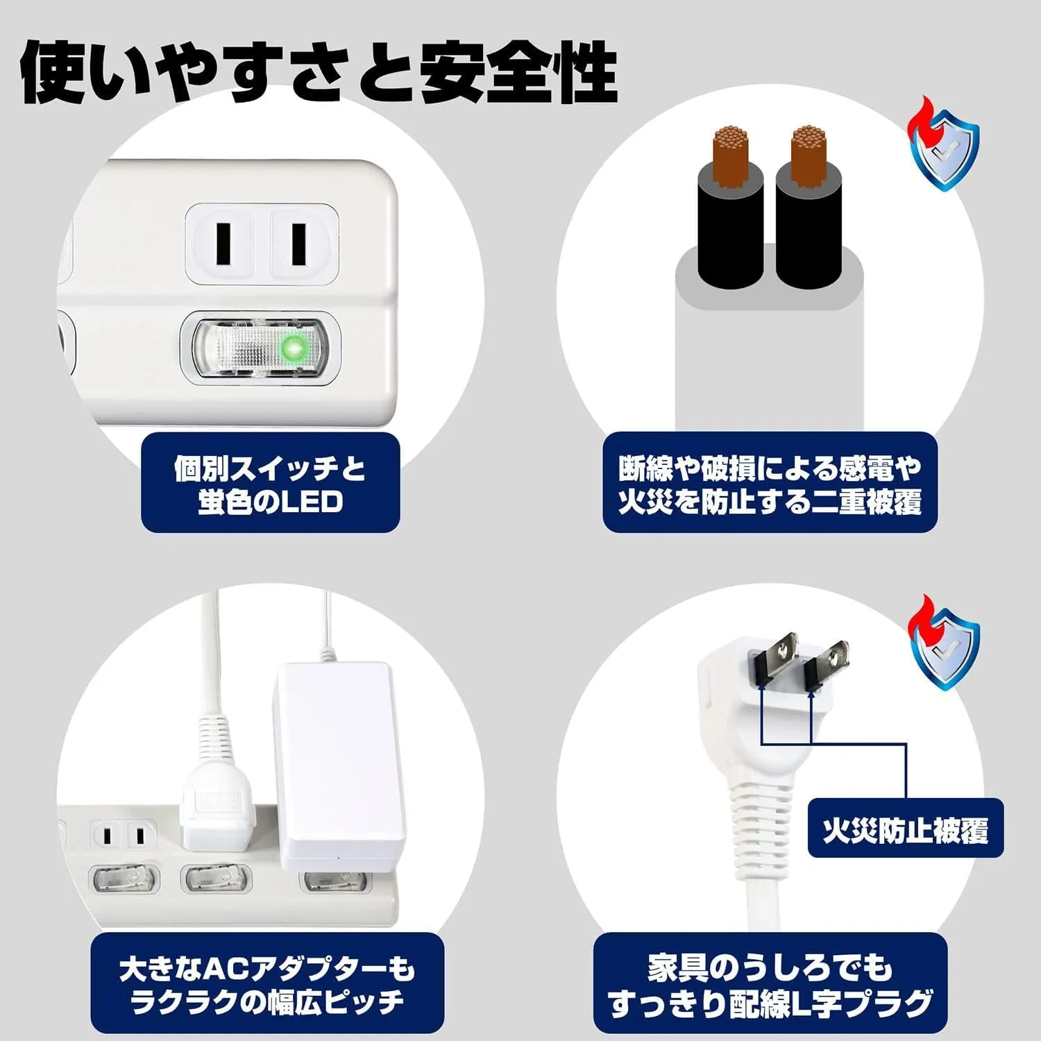 【商品詳細】・定格:AC125V 15A ・合計:1500Wまで ・使用温度範囲:-10℃~40℃ ・コード長:2m ・口数:6個口 ・屋内専用